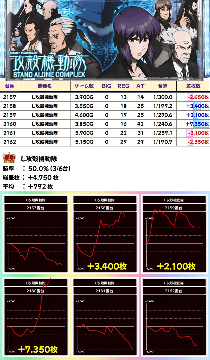 攻殻機動隊(3/6台+)→平均+792枚