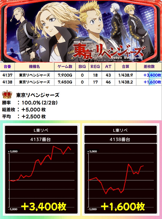 東リべ(2/2台+)→平均+2500枚