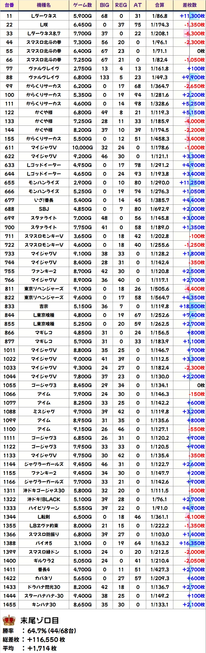 ゾロ目の日で末尾ゾロ目台から万枚超はじめ5000枚超が大量!365日機種や人気機種出ないところからもかなり大量獲得台があるので、ゾロ目番台ならいずれでも優秀台の可能性あり!