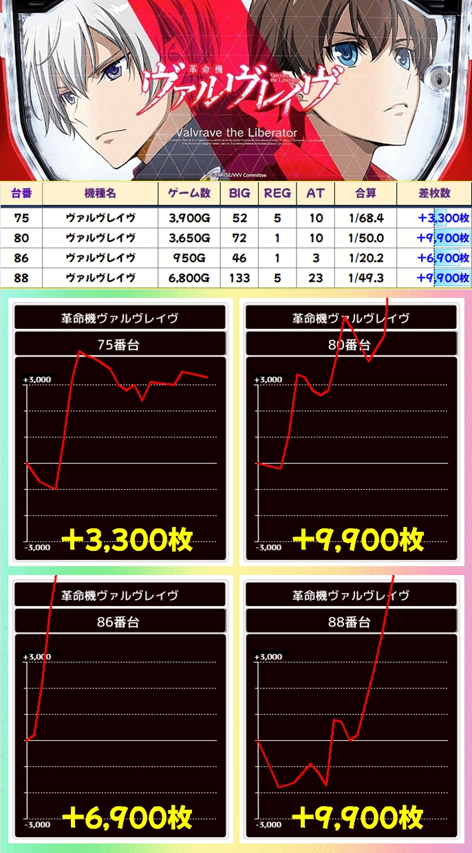 「ヴァルヴレイヴ」は2台が9000枚オーバー!お宝台の出玉性能は優秀です!
