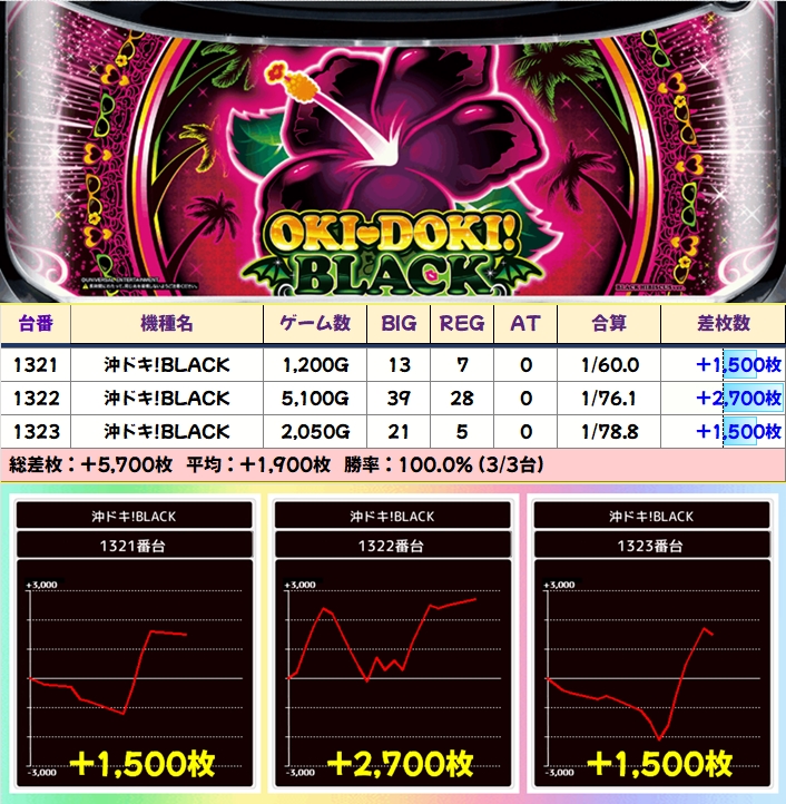 【3台並び】沖ドキBLACK(1321-1323番台)