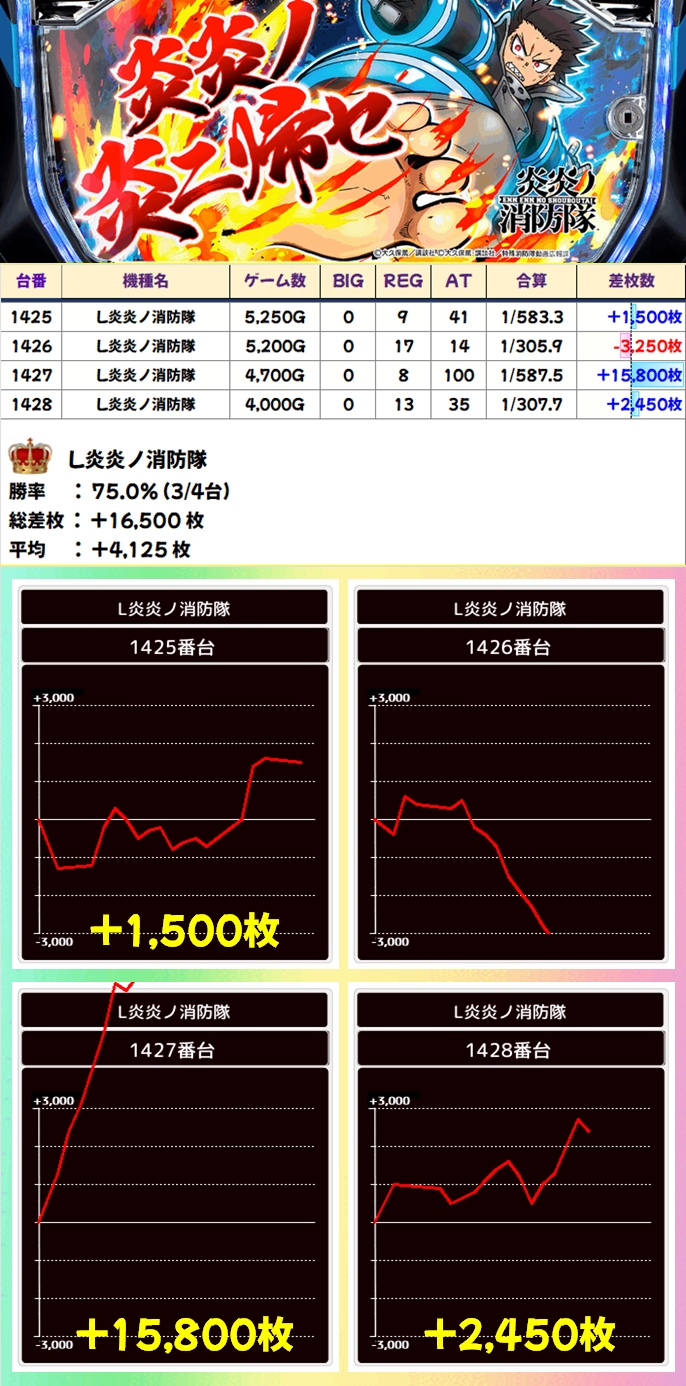 炎炎ノ消防隊(3/4台+)➡平均+4,125枚