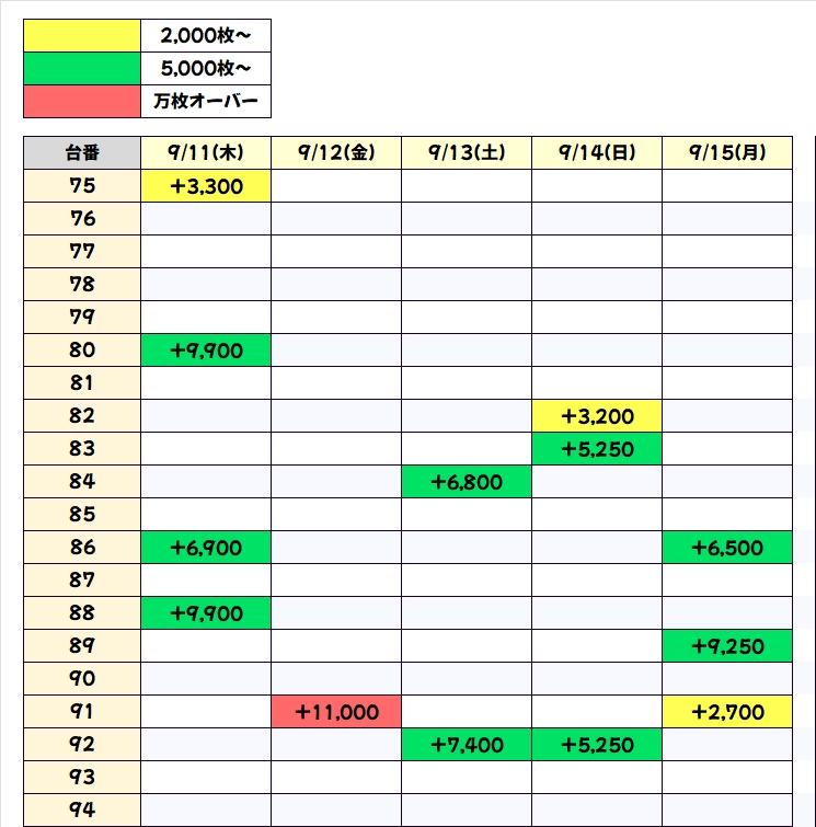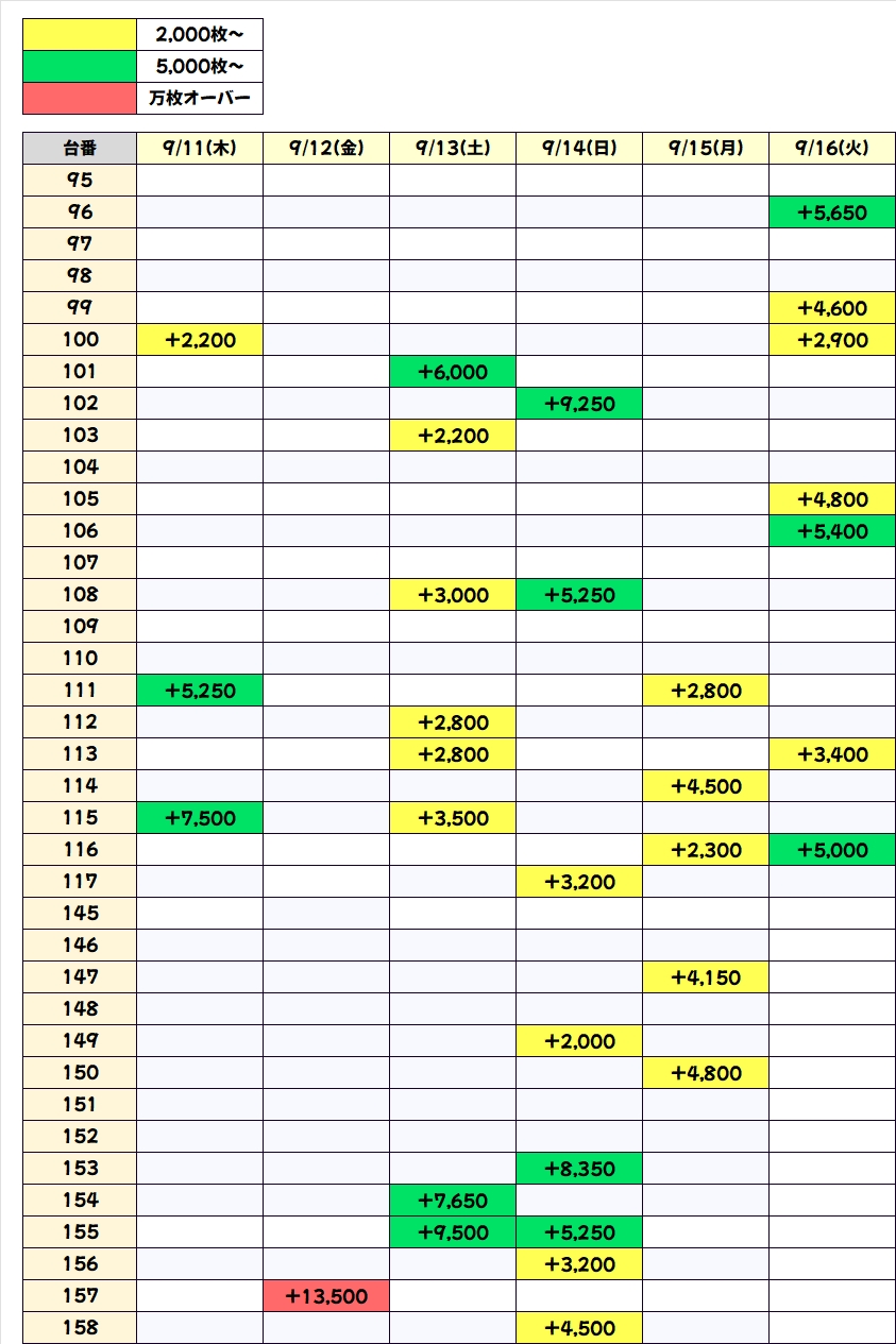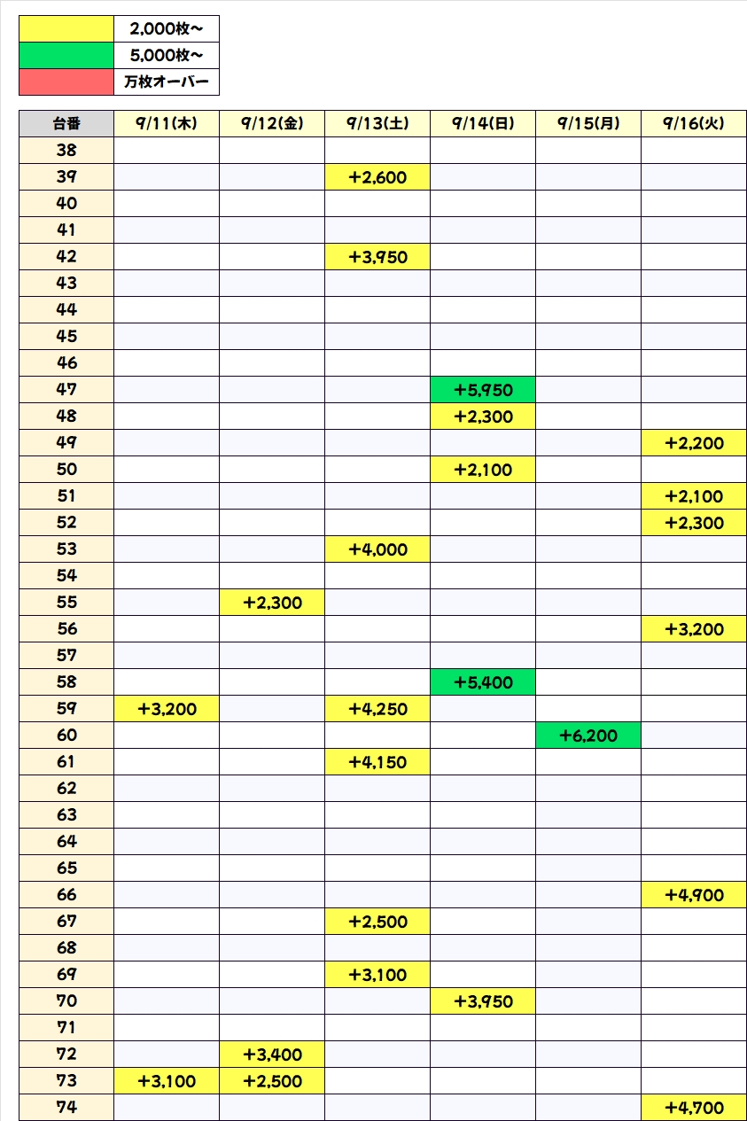 +2000枚超の台の他にも+4000枚超の台が複数出現していました!