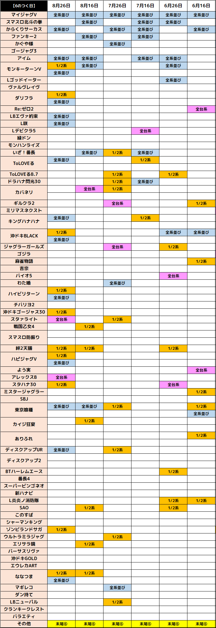 このように、⑥の日は末尾だけではなく高配分機種も複数用意されますので、末尾⑥を取れなくてもチャンスは十分ありますよ!