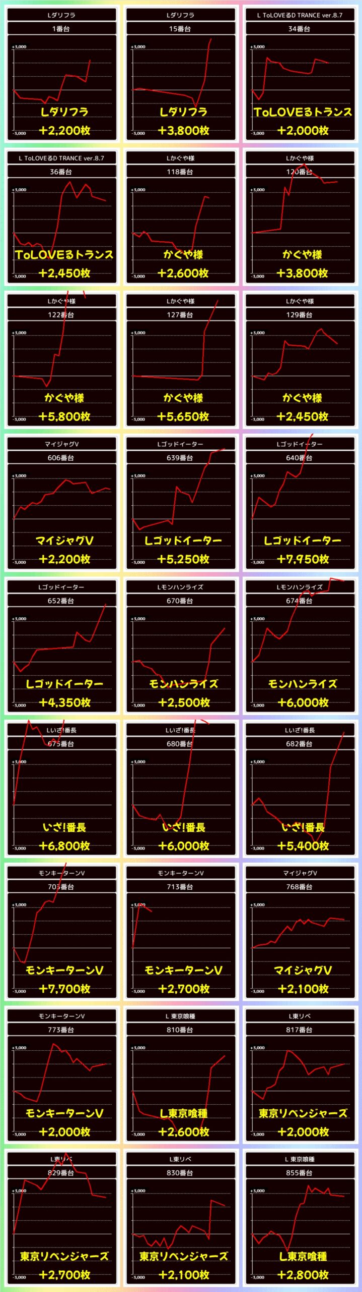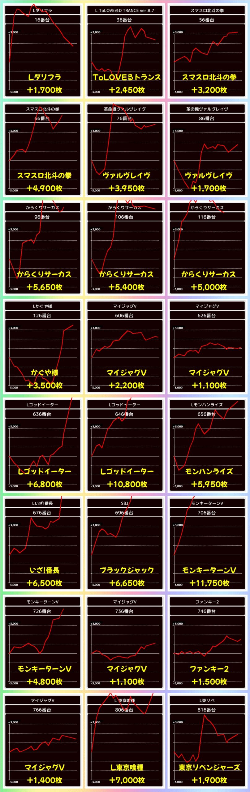 そんな6の日でしたが、今回も末尾仕掛けを筆頭に優秀台が多数出現しており、ホール全体でも約+10万枚を記録!