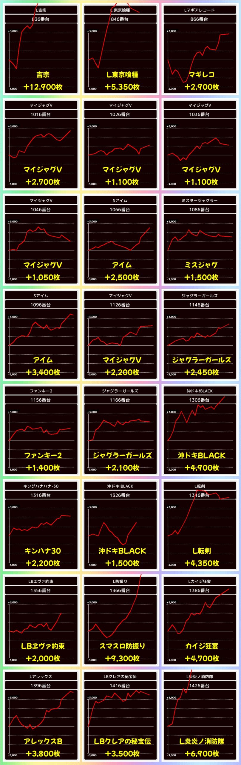 「からくりサーカス」からも優秀台を複数確認でき、+5000枚以上の爆出し台が3台出現していました!
