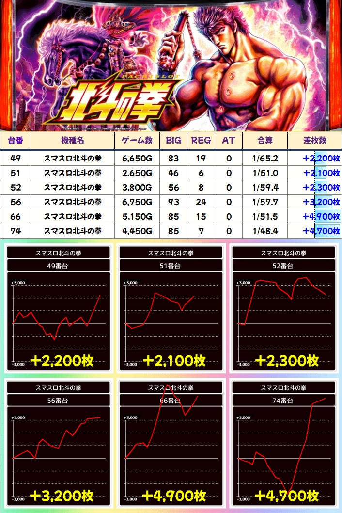 「スマスロ北斗」からは末尾⑥以外からも優秀台を複数確認。