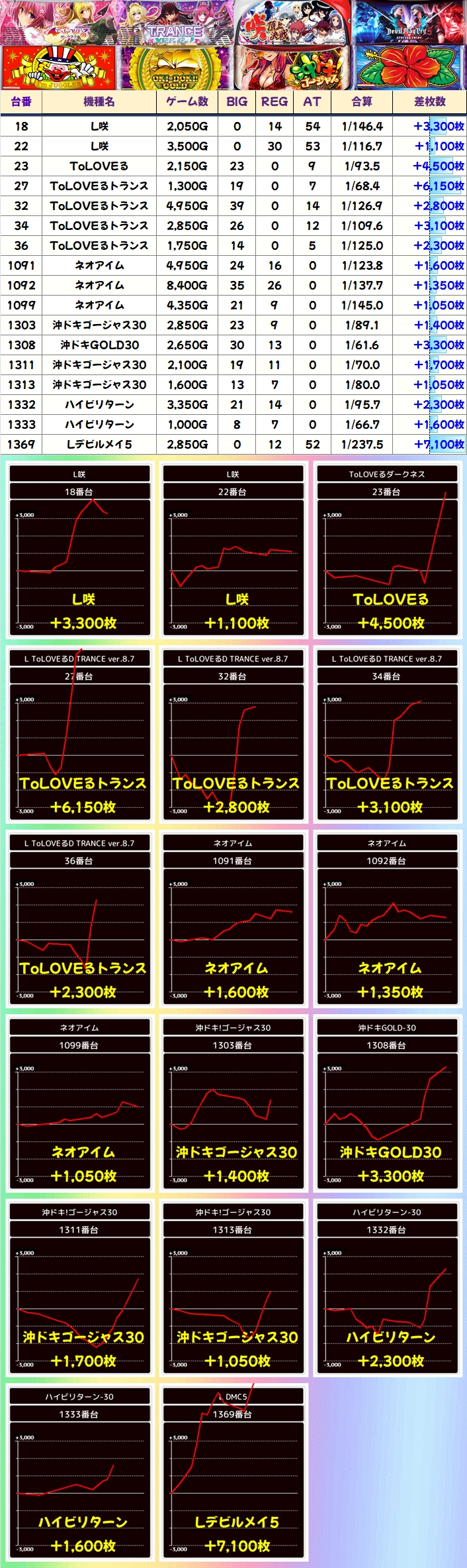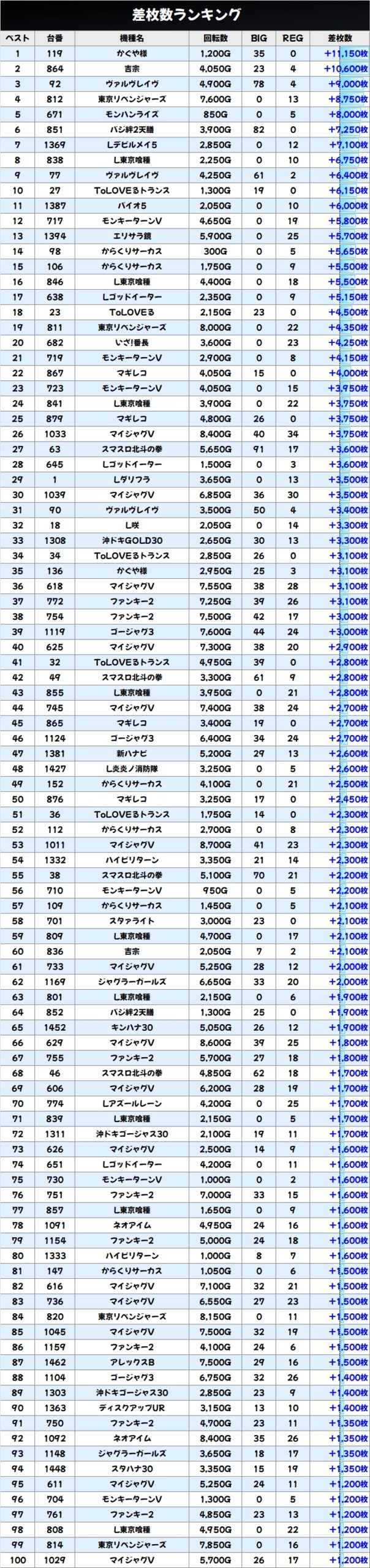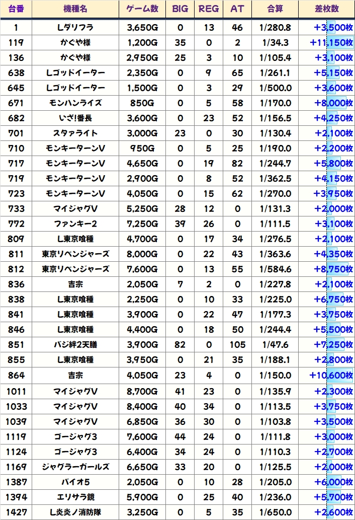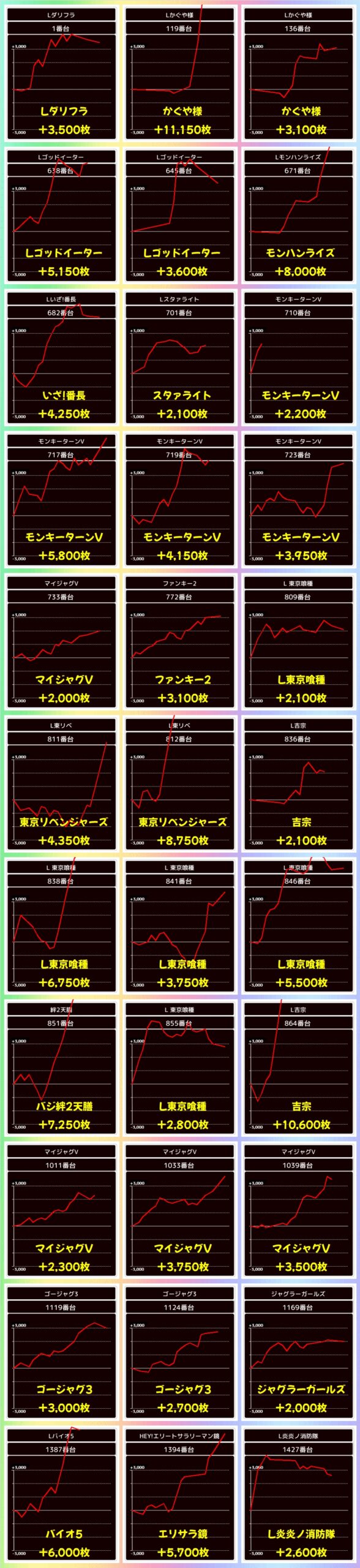 各機種の優秀台をピックアップしますので、データをチェックして明日以降の立ち回りの参考にしてください!