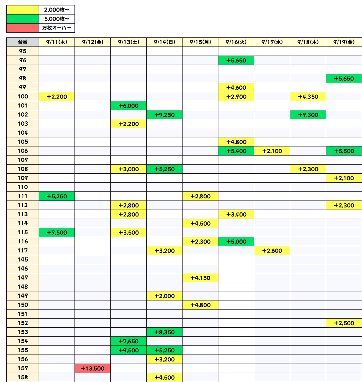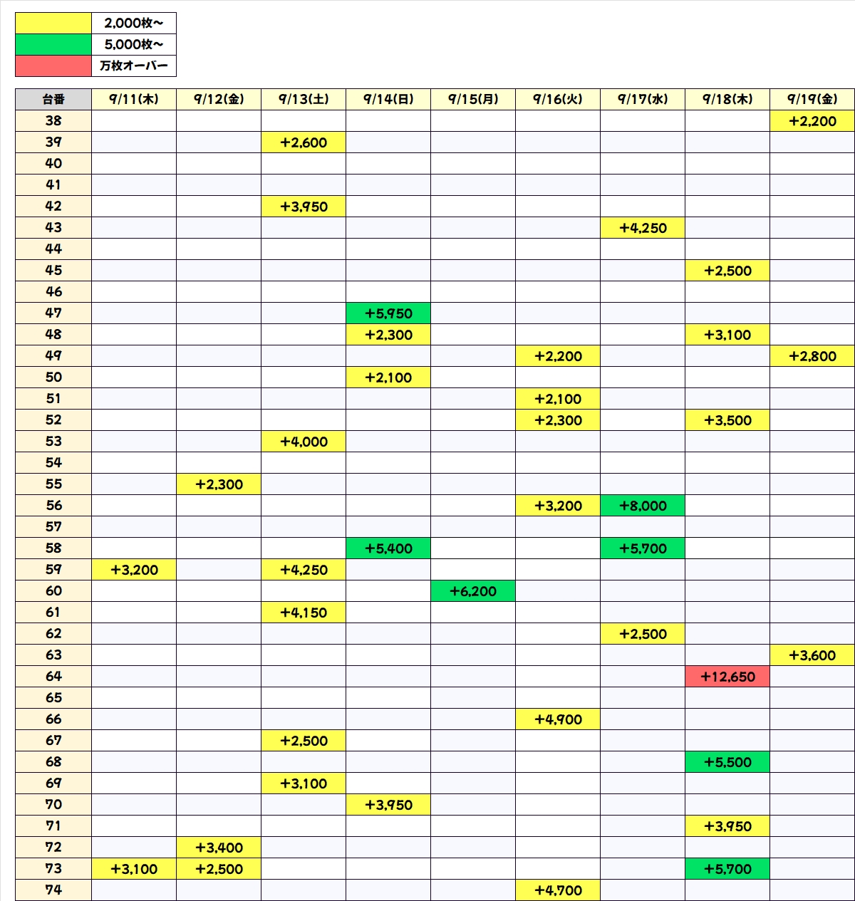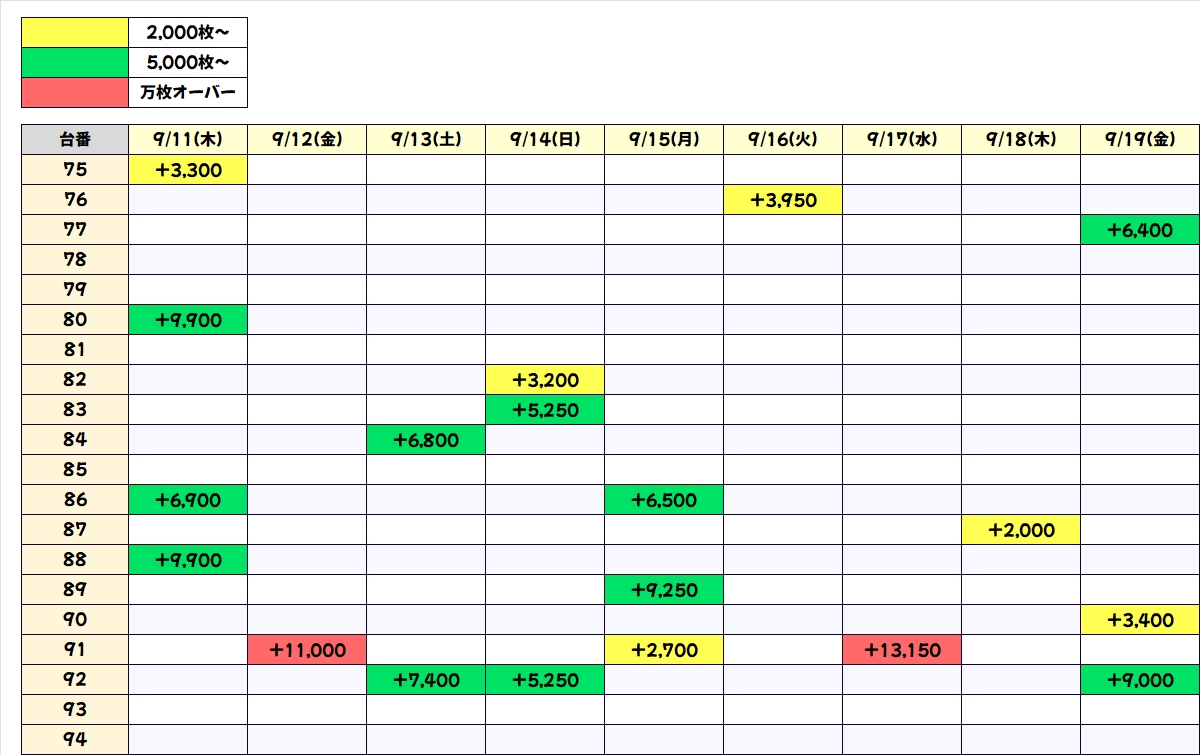 なお、9/20(土)は9月中旬の最終日となりますので、9/11~の結果を参考にして狙い台を決めるようにしましょう!