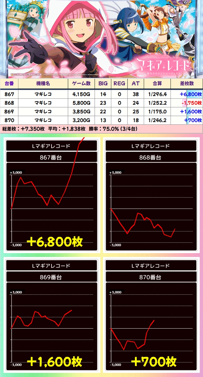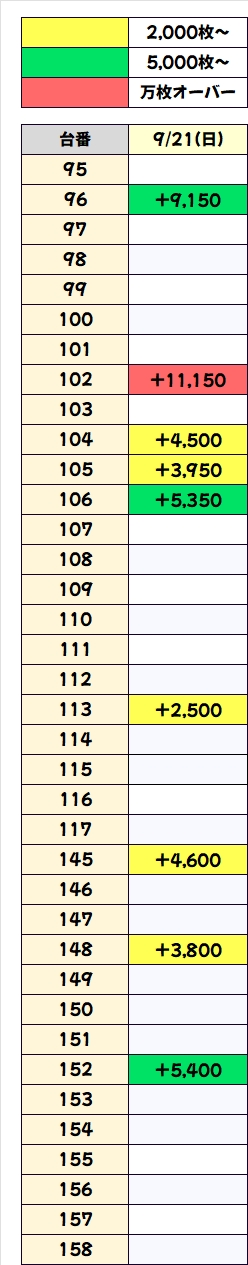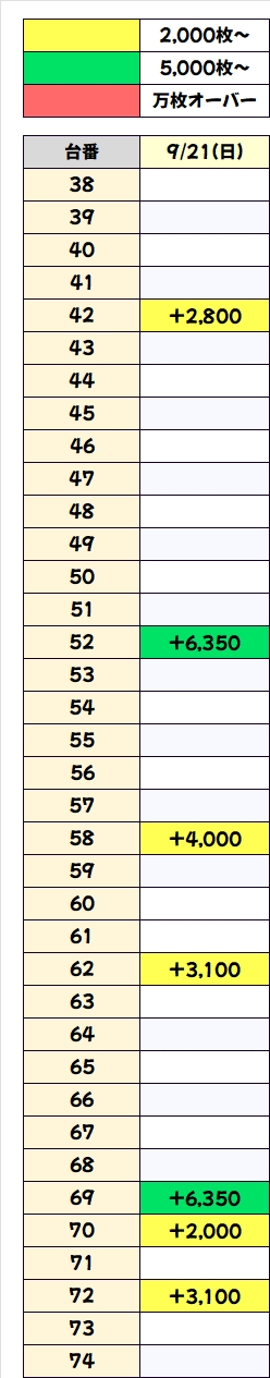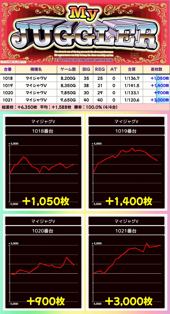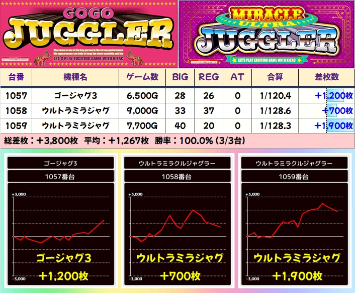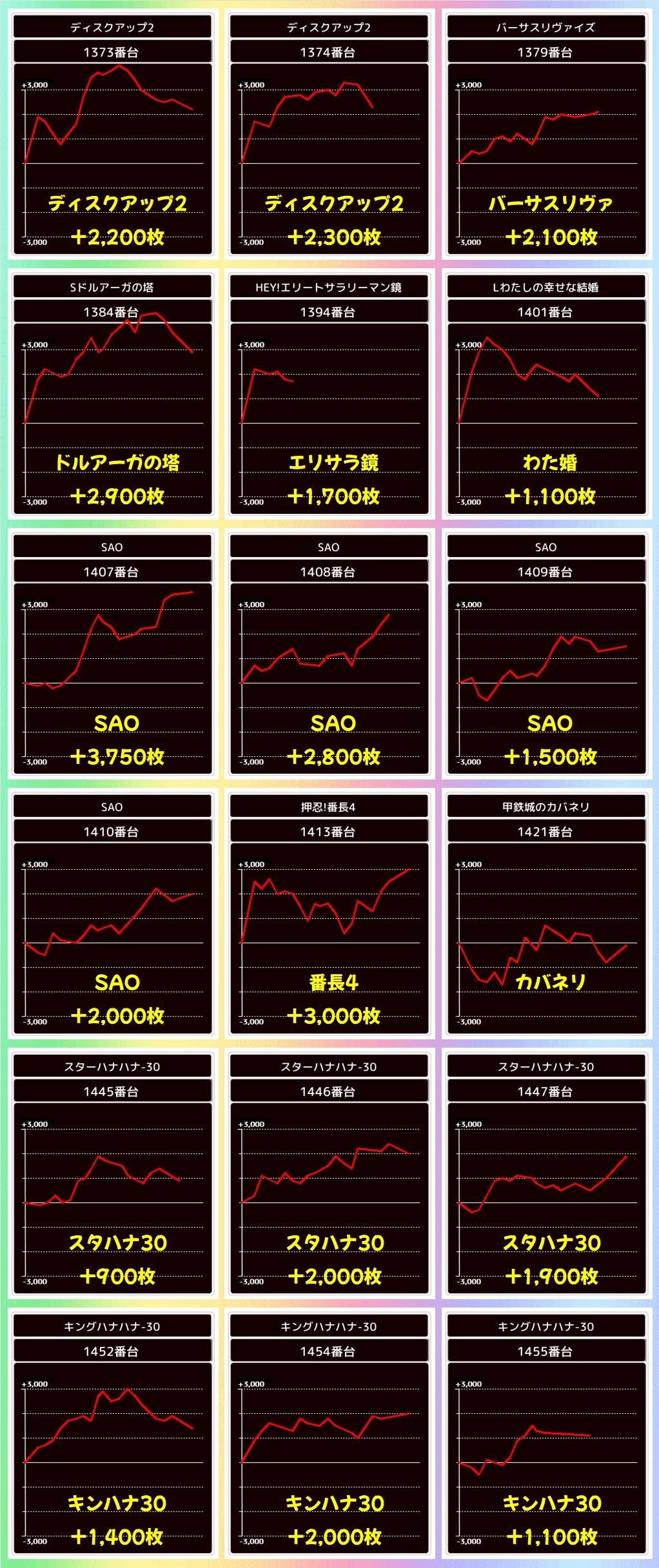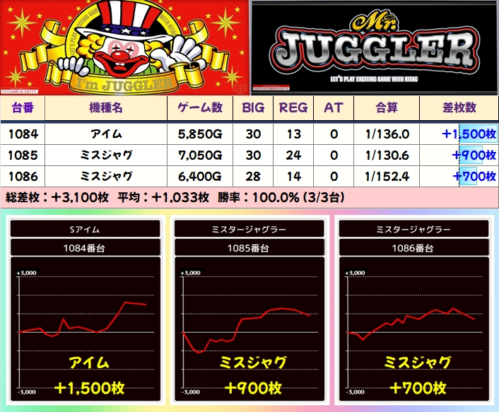 今回も各機種の優秀台(+2000枚以上)をピックアップしていきますので、データをチェックして明日以降の参考にしてください!
