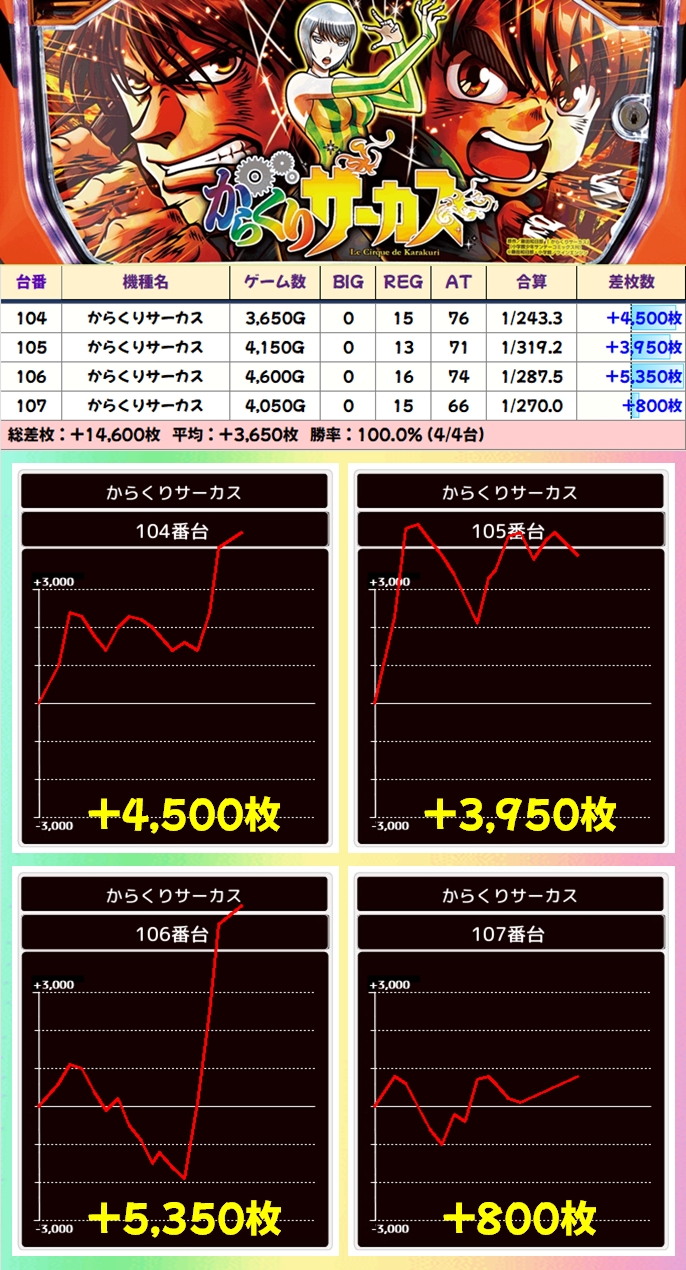「からくりサーカス」からは下旬初日から万枚オーバー台が出現!
