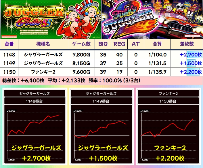 【3台並び】ジャグラーガールズ・ファンキー2(1148-1150番台)
