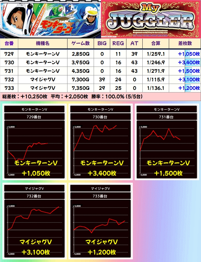 コンプリート3台、万枚オーバーが全部で5台とまさにお祭り騒ぎとなっていましたね。