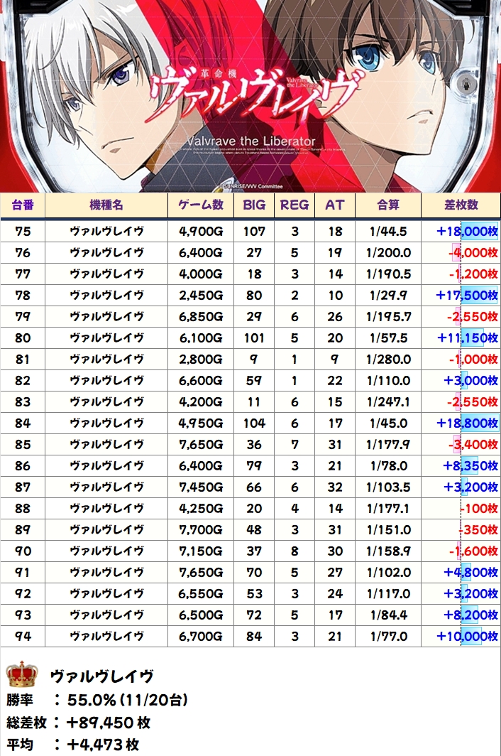 【全台系濃厚】ヴァルヴレイヴ(11/20台+)→平均+4,473枚