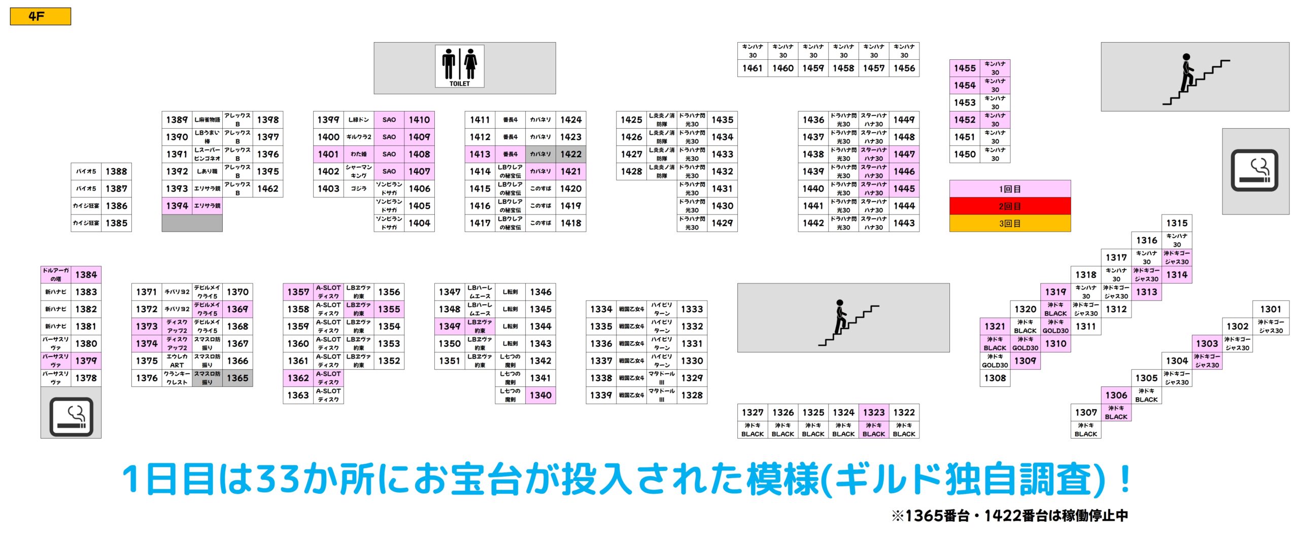 過去の傾向的に、『激熱7days』の期間中は対象フロアにお宝台が大量投入されることが予想されますので、残りの期間中も積極的に4Fを攻めていきましょう!
