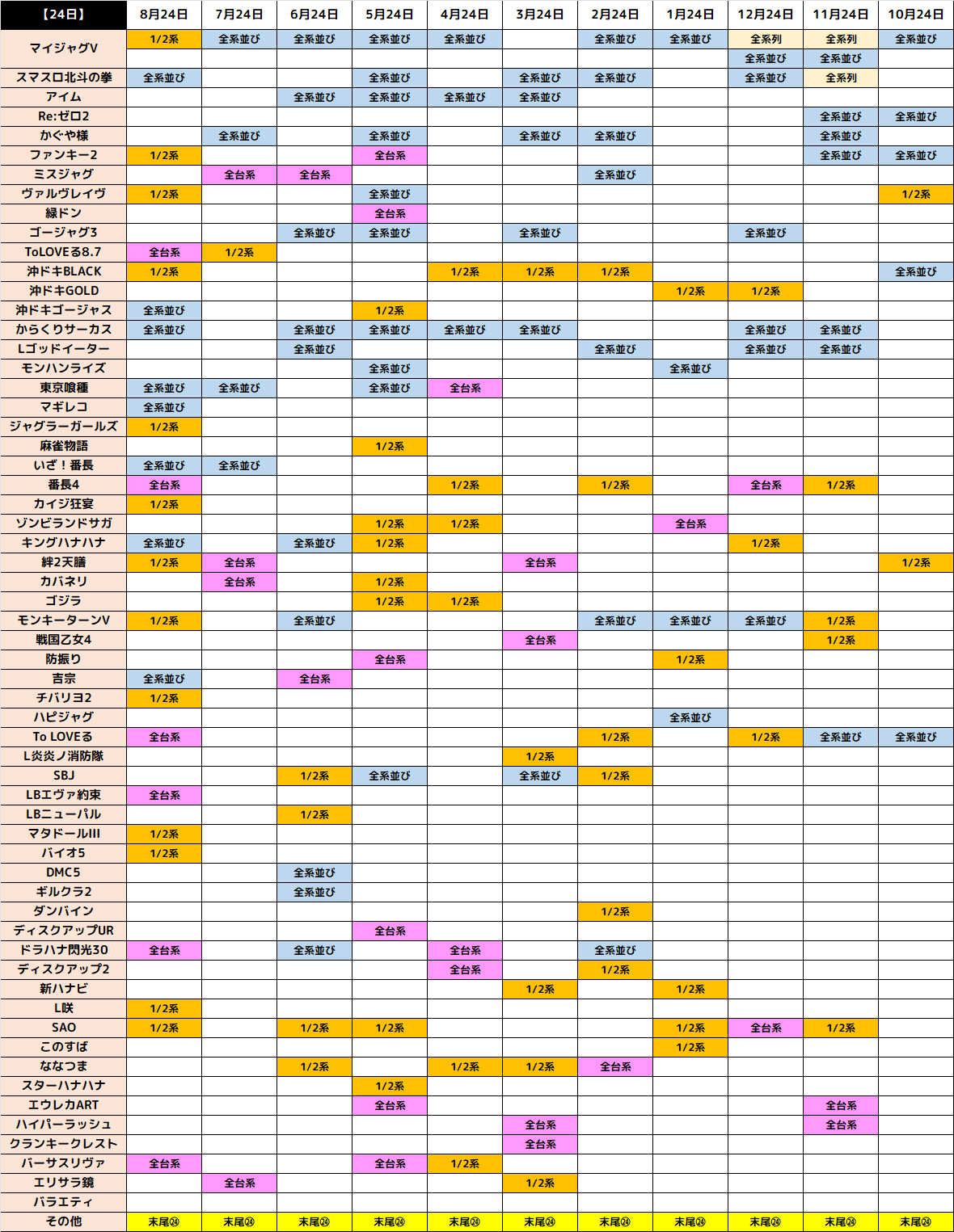 下記に記載した過去の仕掛けでは、全台系・1/2系・並びの仕掛けが多数出現しております。今回も同レベルの仕掛けが出現するのは間違いないと思われます!
