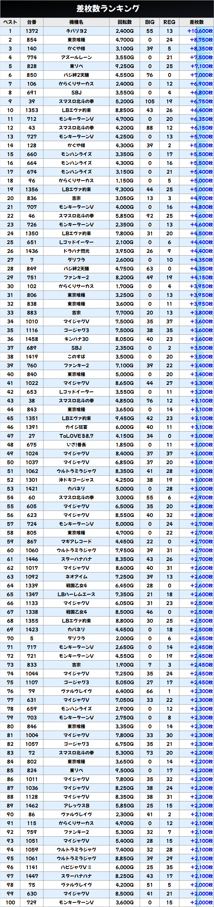 差枚数ランキング&島図をチェック!