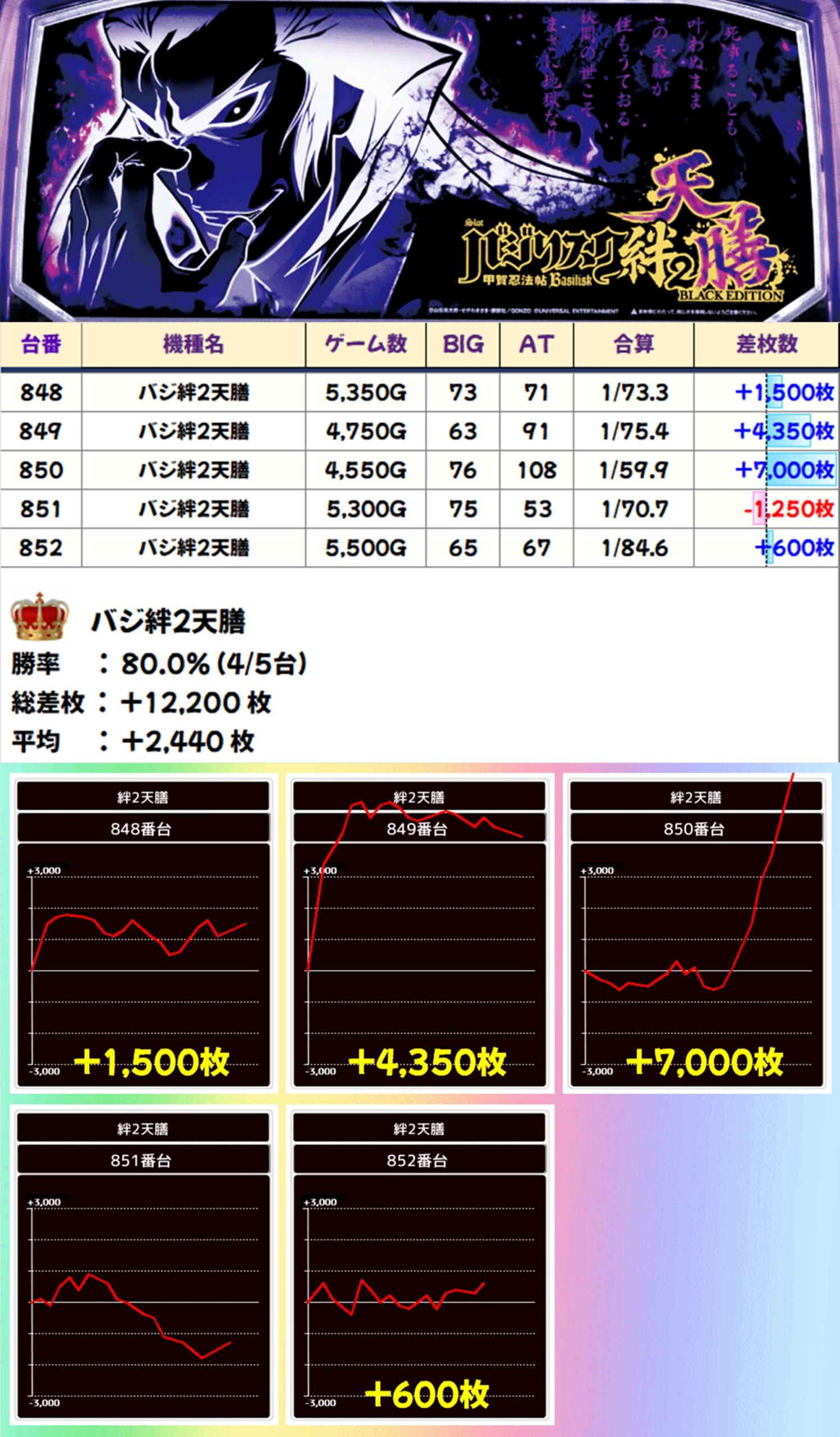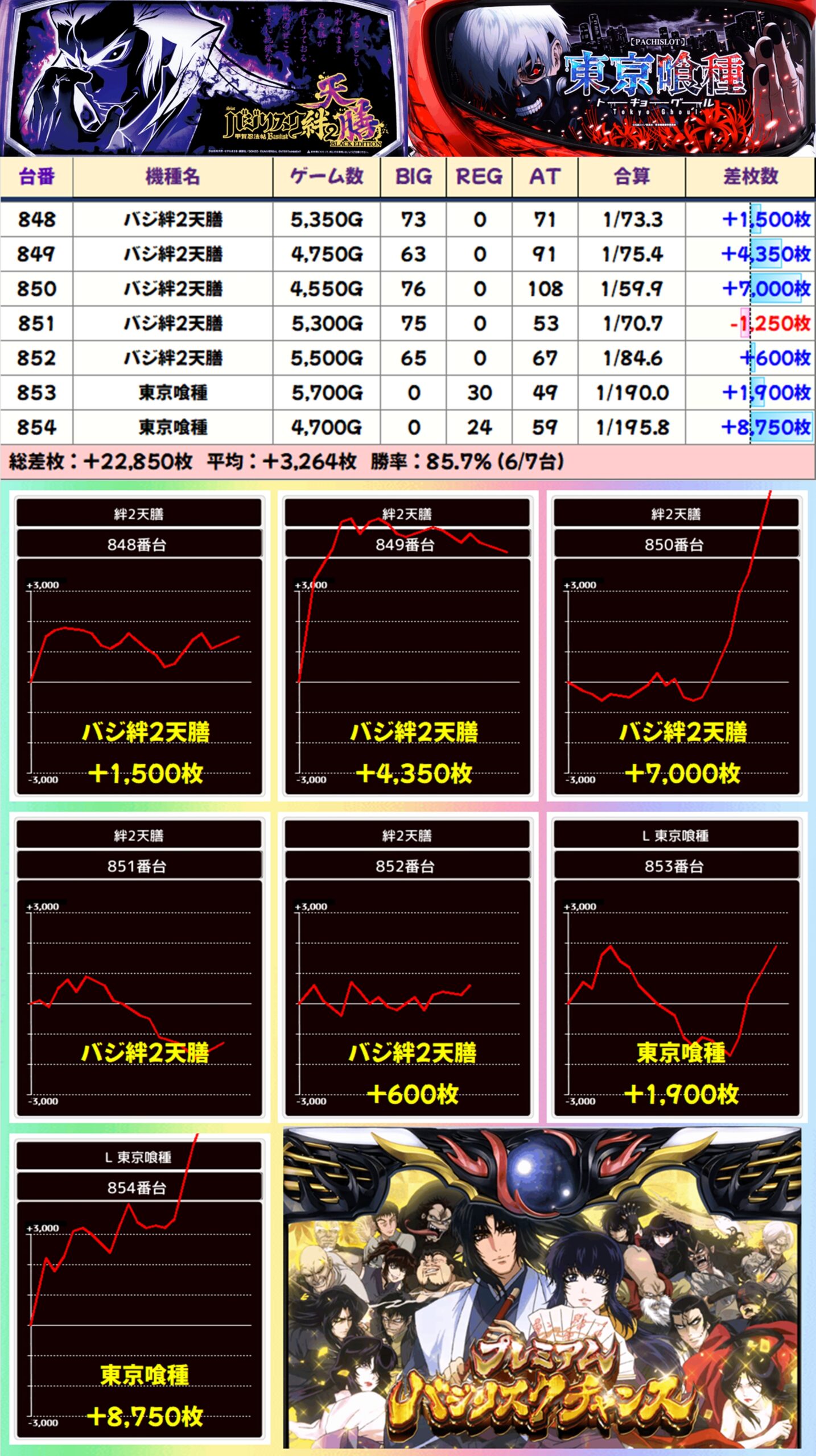 【全系列】バジ絆2天膳・東京喰種(848-854番台)→平均+3,264枚