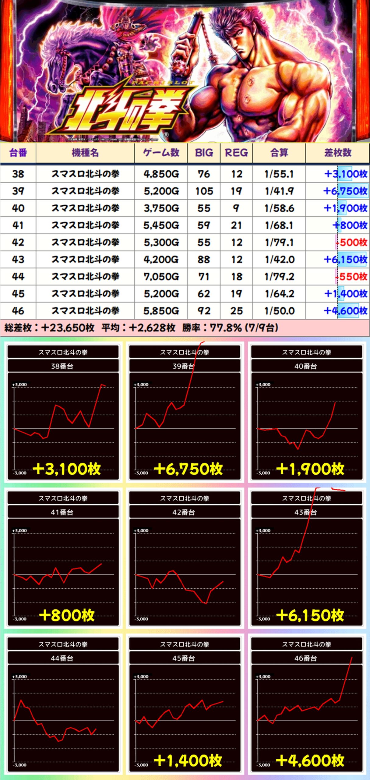 【全系列】スマスロ北斗の拳(38-46番台)→平均+2,628枚
