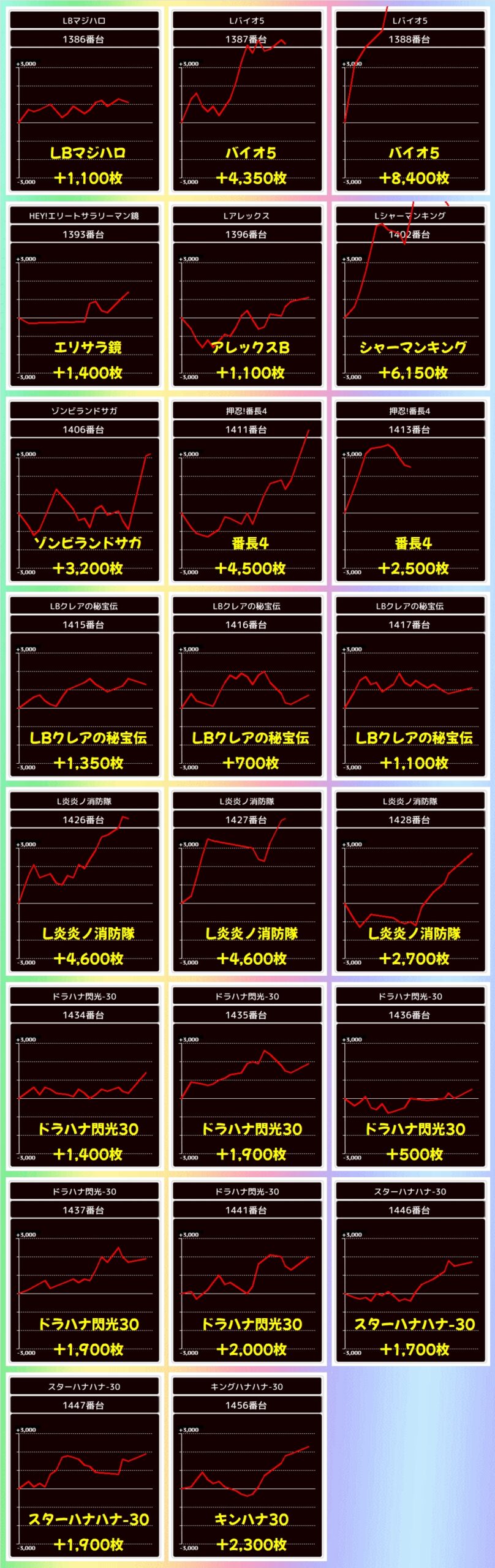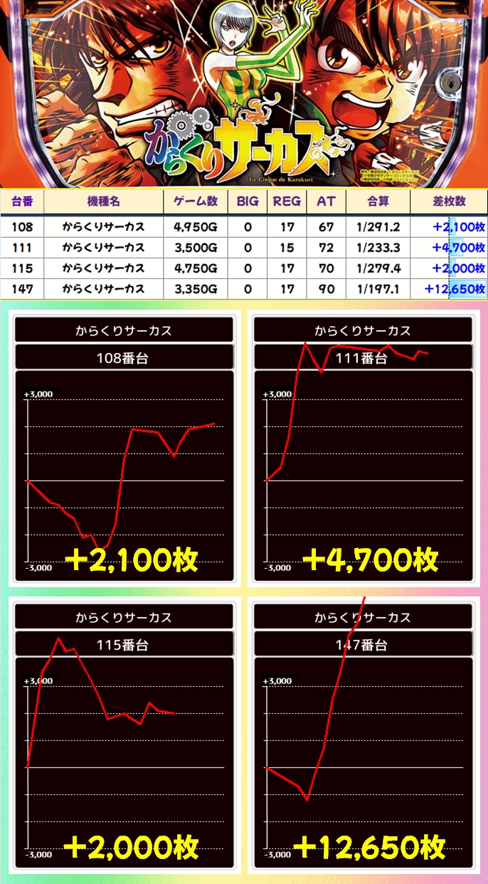 からくりサーカスからは2000枚超が4台あり+12000枚のド派手な結果を残した台も!