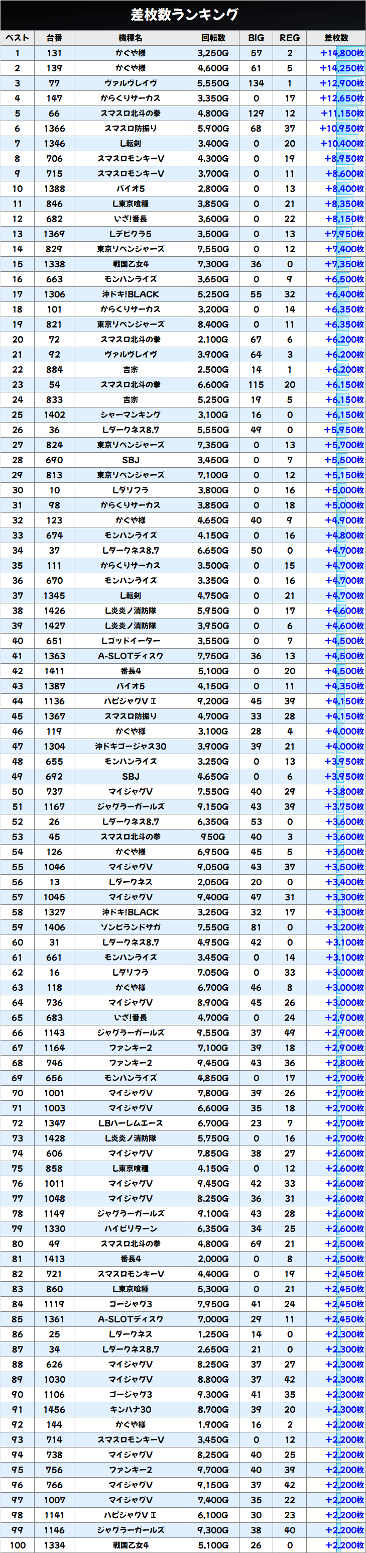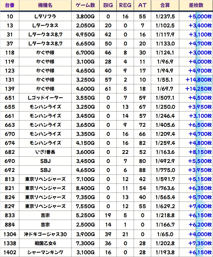 各機種の優秀台をピックアップしますので、データを確認してみましょう!