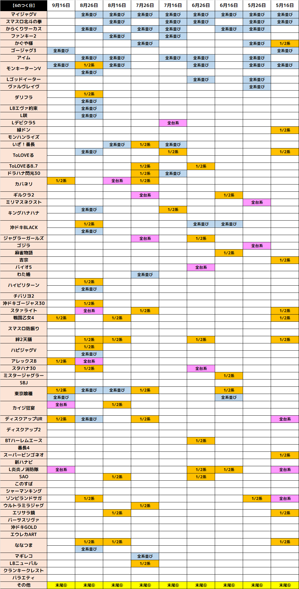 また、末尾⑥を絡めた並びや高配分機種が出現する可能性も高いので、末尾⑥だけでなく末尾⑥機種や⑥の周囲の台がチャンスにもなりますよ!