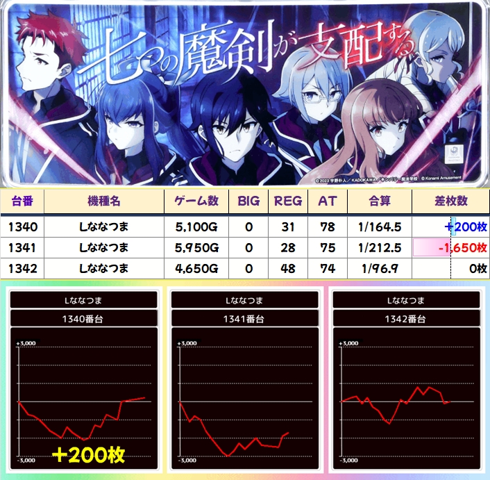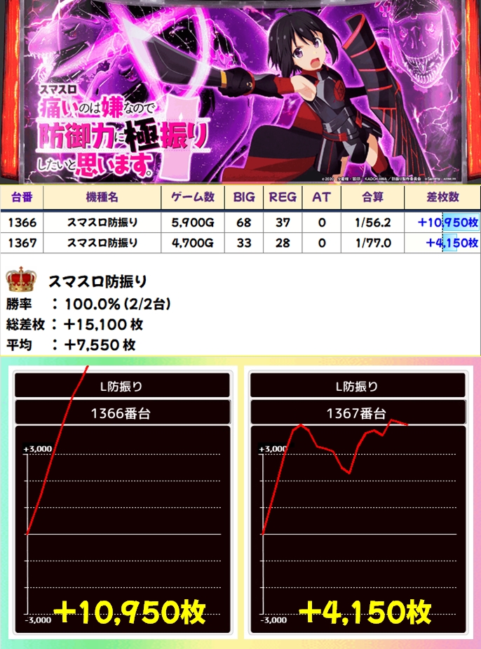 全台系や1/2系濃厚、並びなどの仕掛けなども絡んでおりました。一部の末尾⑥はマイナスになってしまったものの、防振りや転剣などからは万枚突破台もあり!