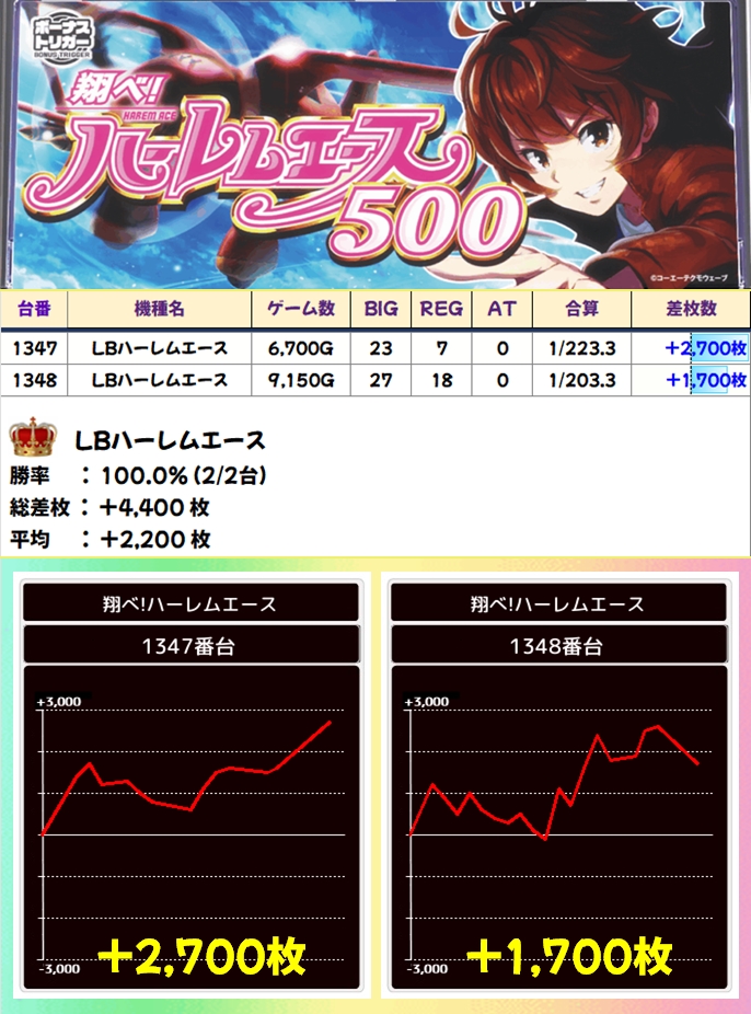 【全台系濃厚】ハーレムエース(2/2台+)→平均+2,200枚