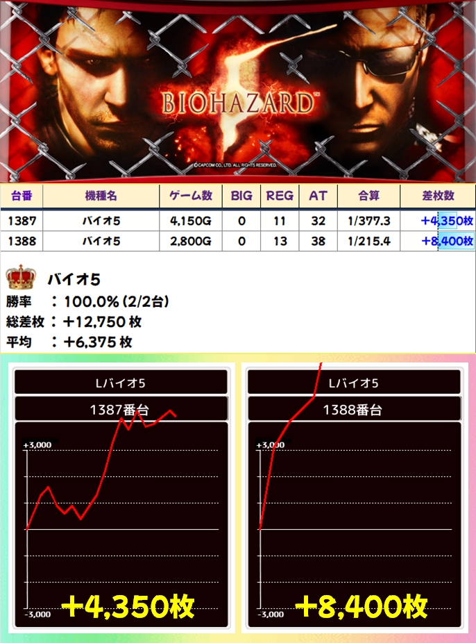 【全台系濃厚】バイオ5(2/2台+)→平均+6,375枚