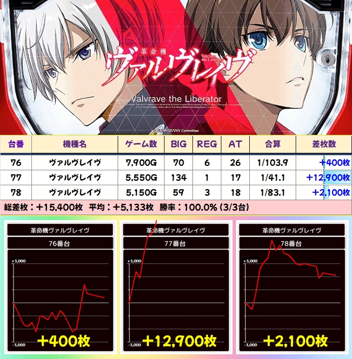 【3台並び】ヴァルヴレイヴ(76-78番台)→平均+5,133枚