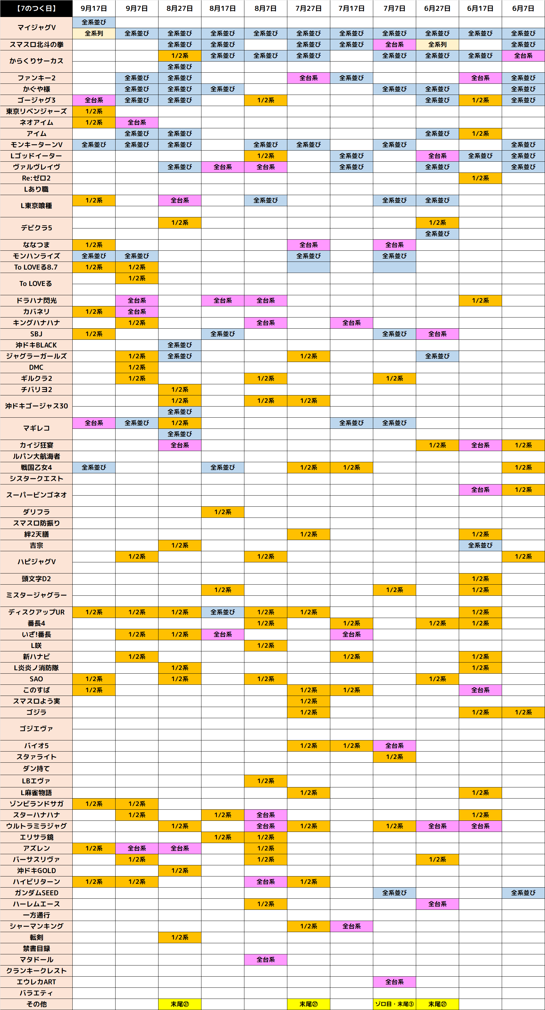 7の日は下表の通り全台系や1/2系、並びなどの多数の仕掛けに期待できます。