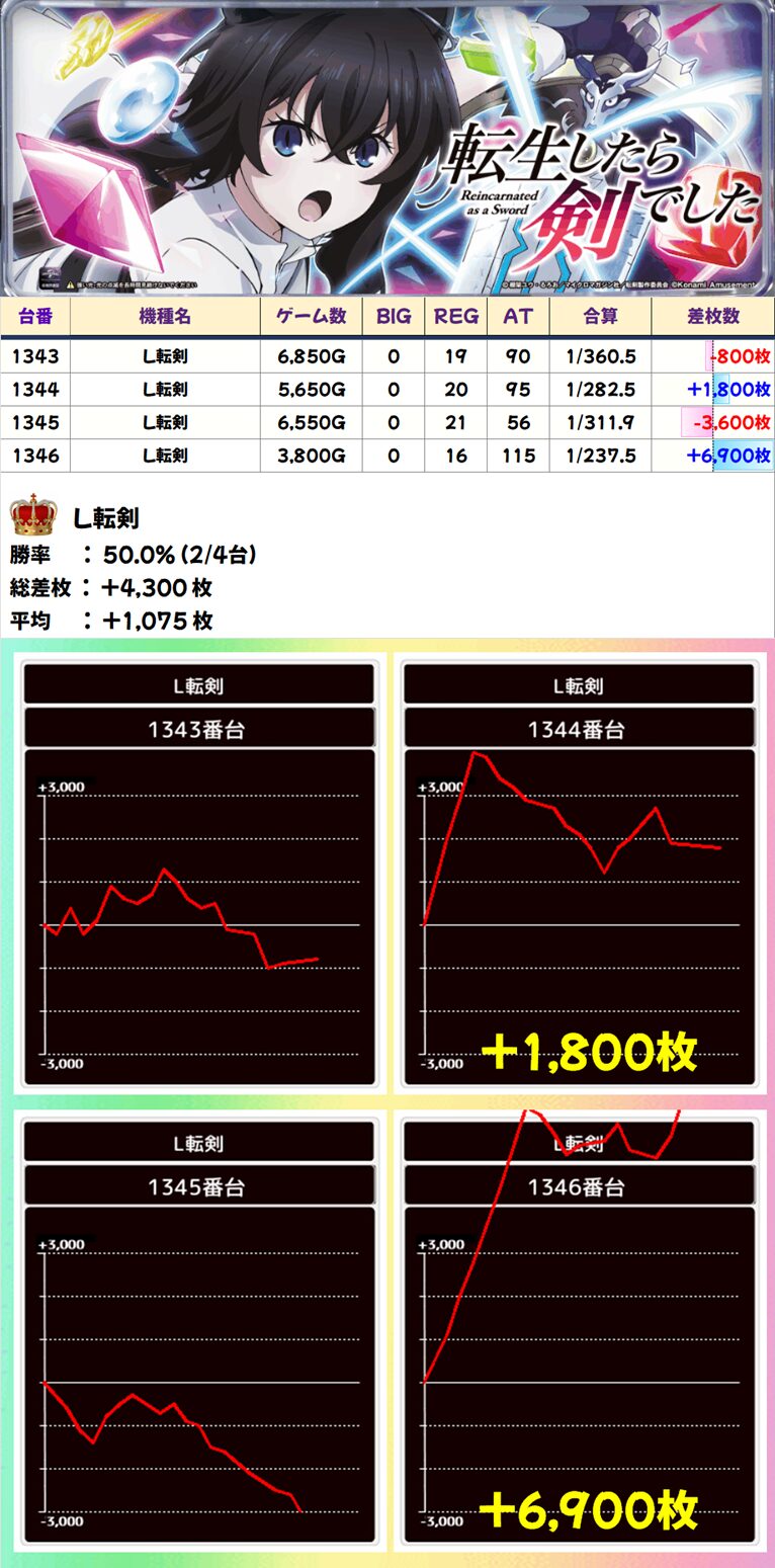 L転剣 (2/4台+) ➡平均 +1,075枚