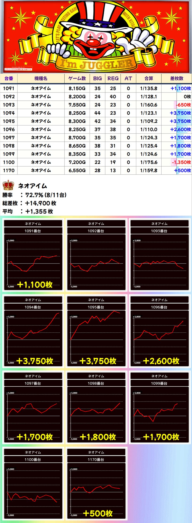 ネオアイム (8/11台+) ➡平均 +1,355枚