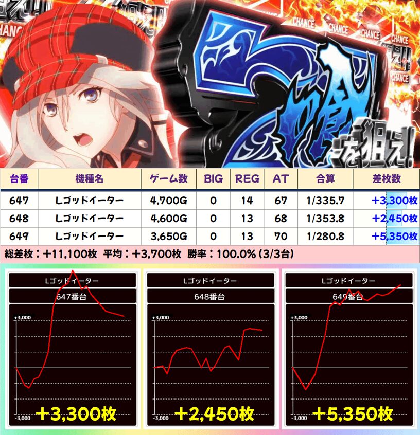 【3台並び】ゴッドイーター(647-649):平均+3700枚