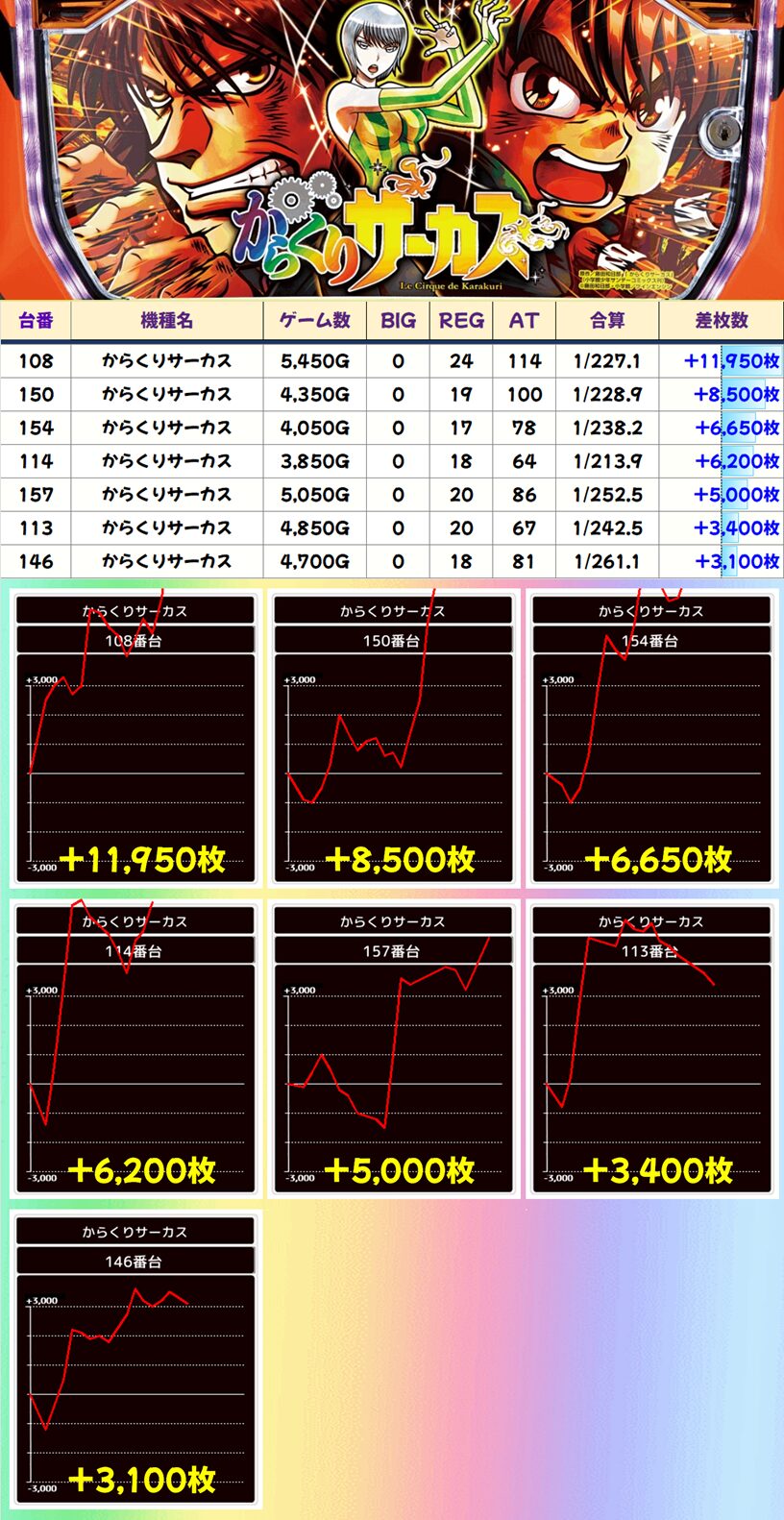 からくりは万枚超の爆裂台アリ!そのほかにも優秀台は多数確認!!