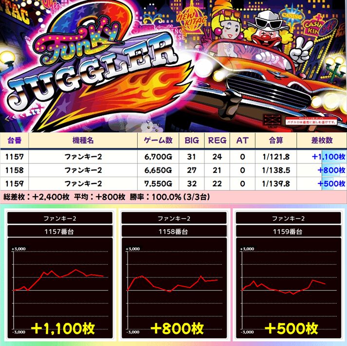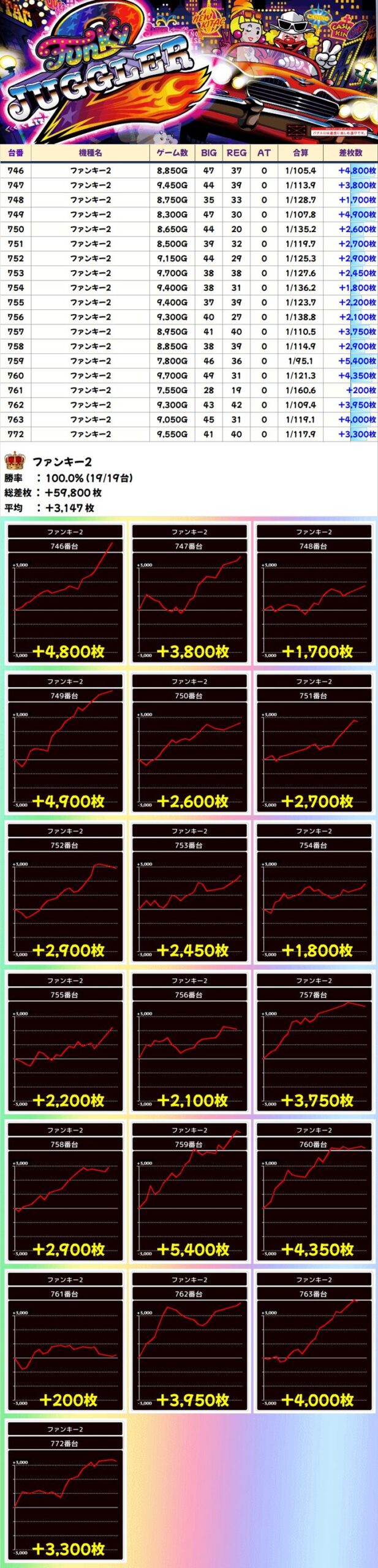 2Fファンキー2 (19/19台+) ➡平均 +3,147枚