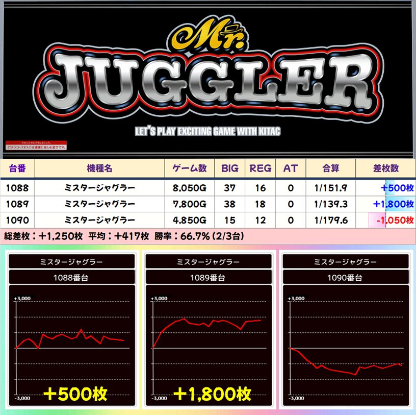 【3台並び】ミスタージャグラー(1088-1090番台)