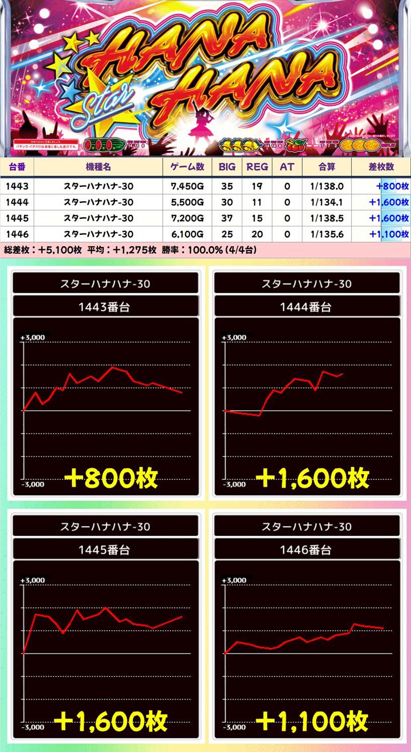 ■スターハナハナ-30 (6/7台+) ➡平均 +1,007枚