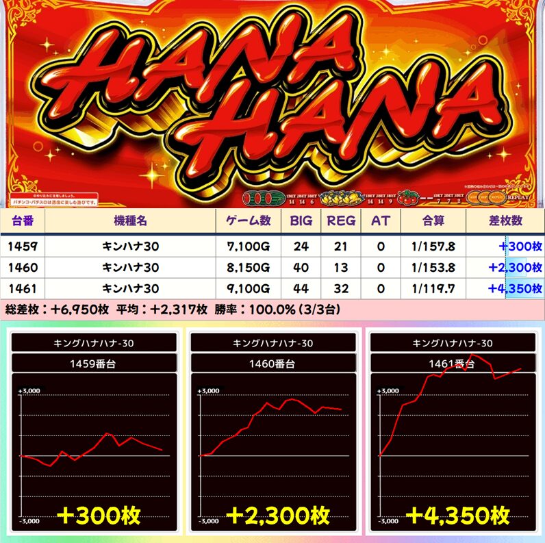 ■キンハナ30 (9/16台+) ➡平均 +634枚