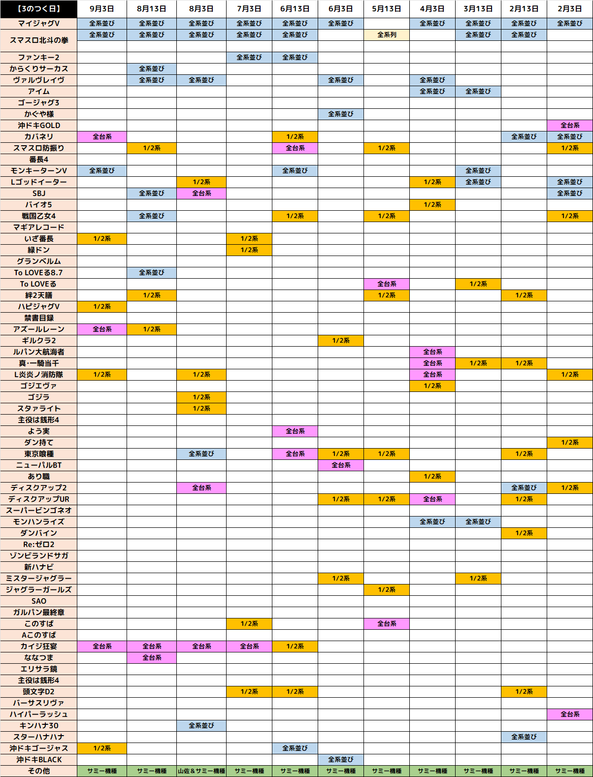 毎回サミー機種に優秀台が複数あり、もちろんサミー機種以外からも全台系濃厚や並びといった王道の仕掛けを複数確認できております。