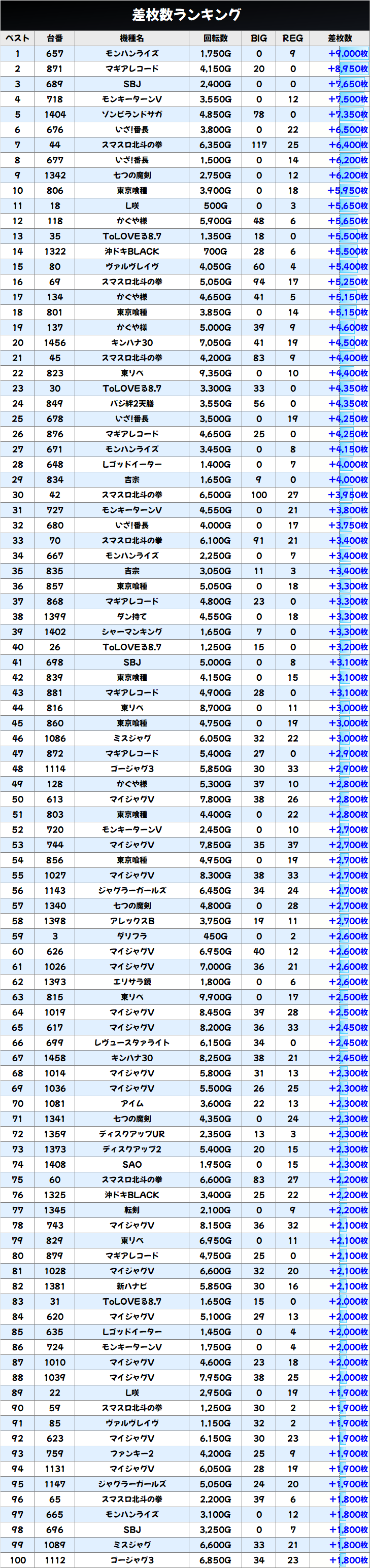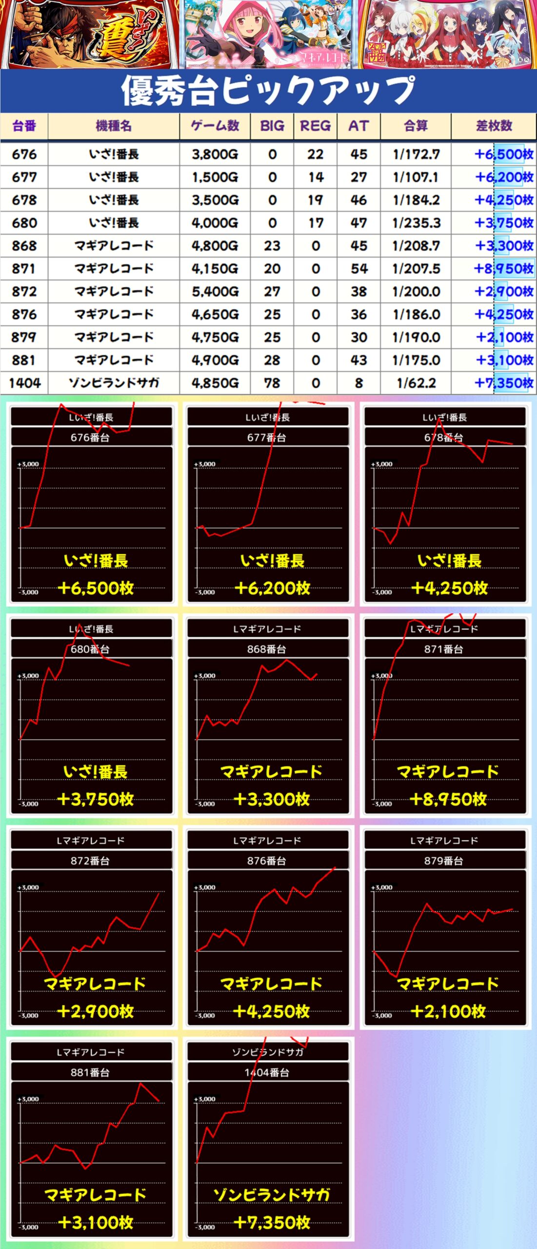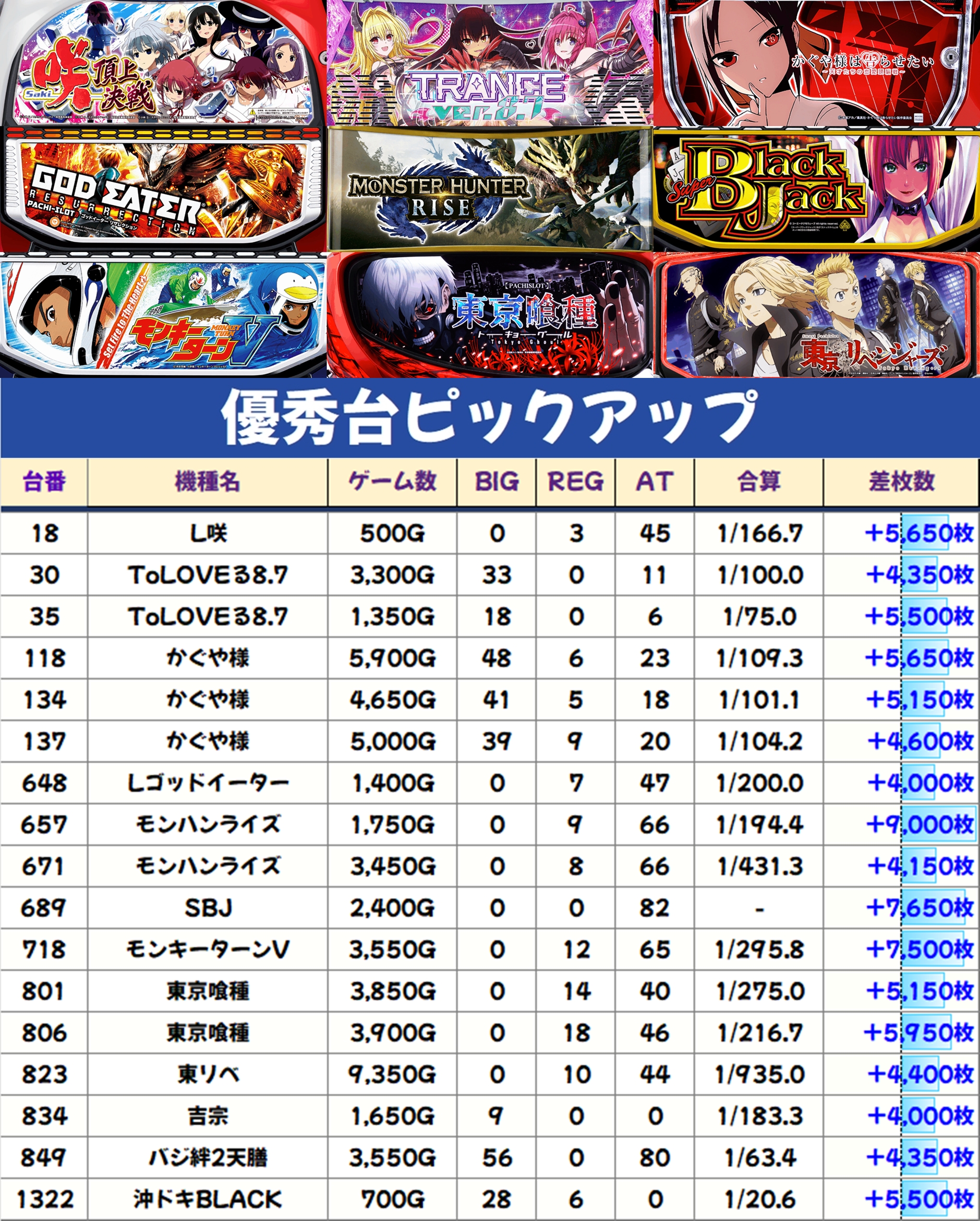 各機種の優秀台をピックアップしますので、データをチェックしていきましょう!
