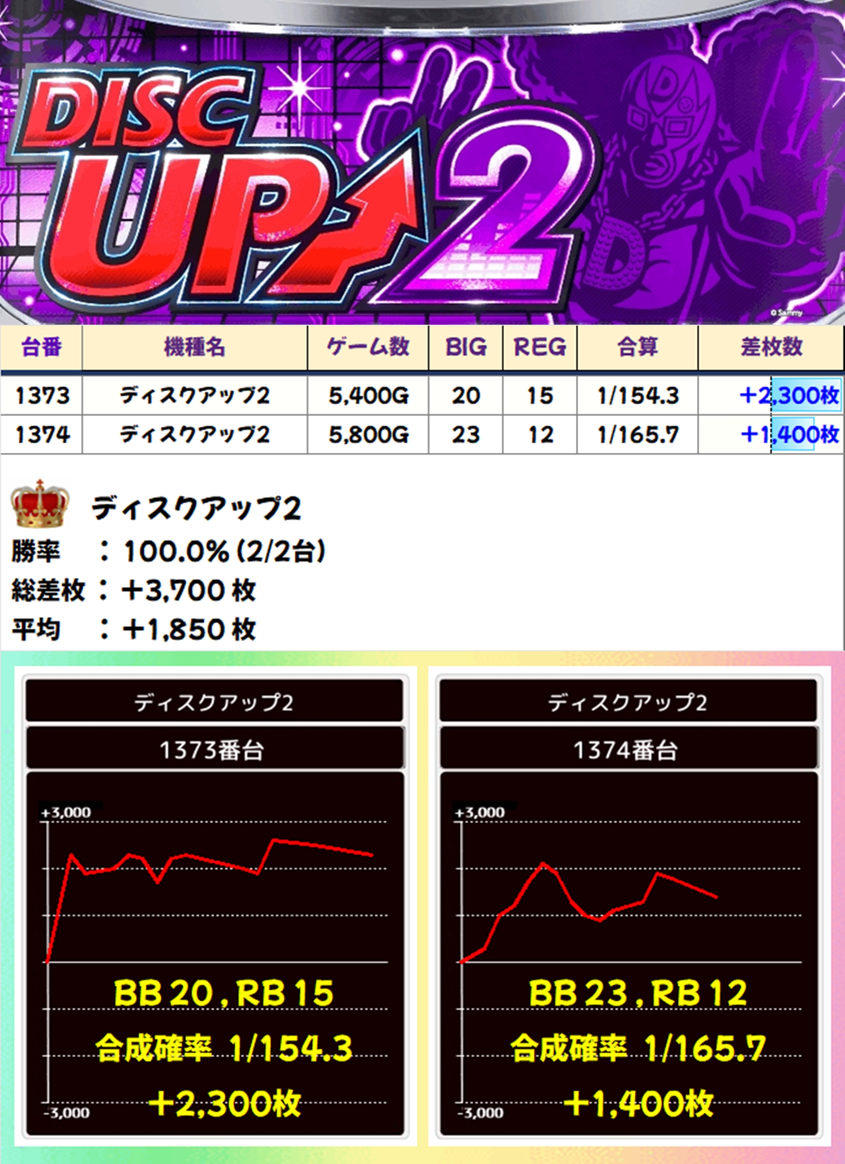 【全台系濃厚】ディスクアップ2(2/2台+)→平均+1,850枚