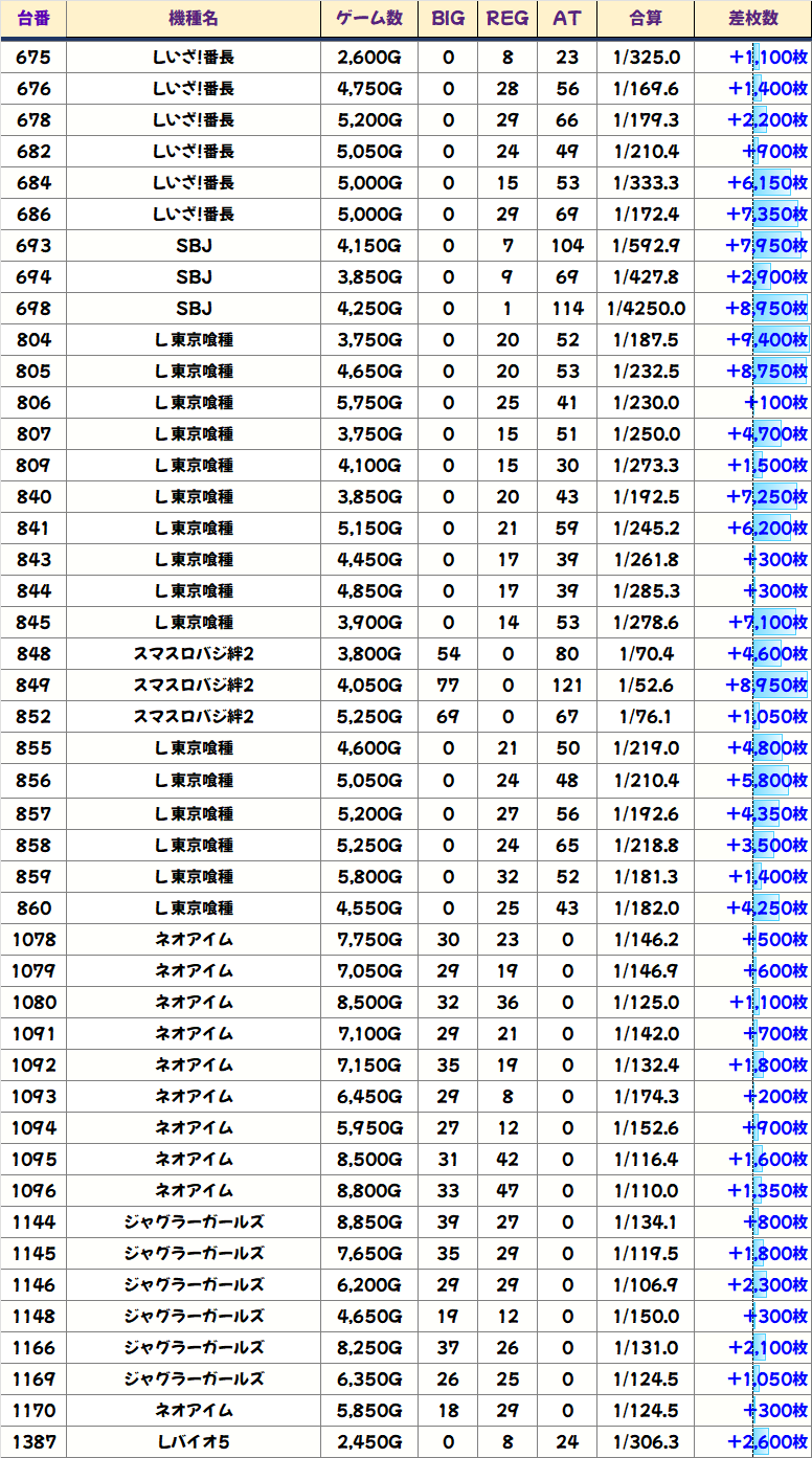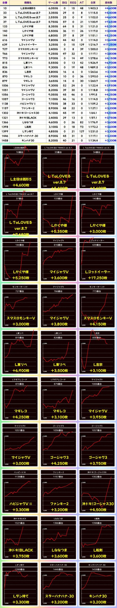 各機種の優秀台をピックアップしていきますので、データをチェックしてみてください