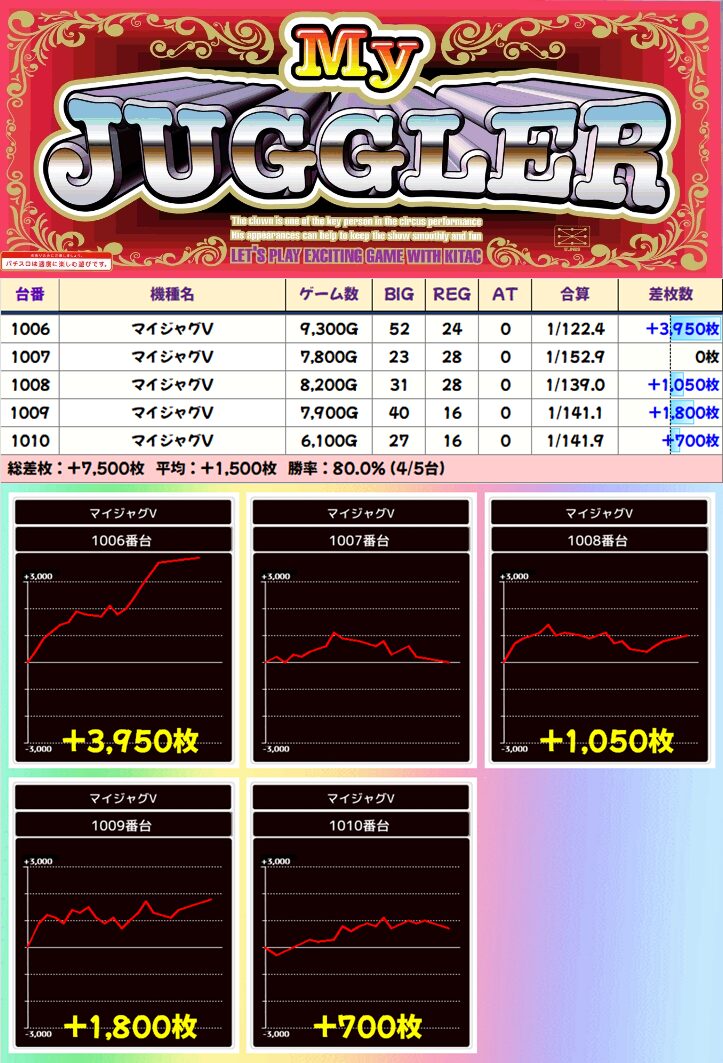 ジャグラーガールズ (6/11台+) ➡平均 +291枚