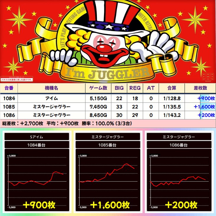 【3台並び】アイムジャグラーEX〜ミスタージャグラー(1084-1086番台)
