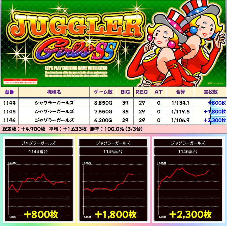 【3台並び】ジャグラーガールズ(1144-1146番台)