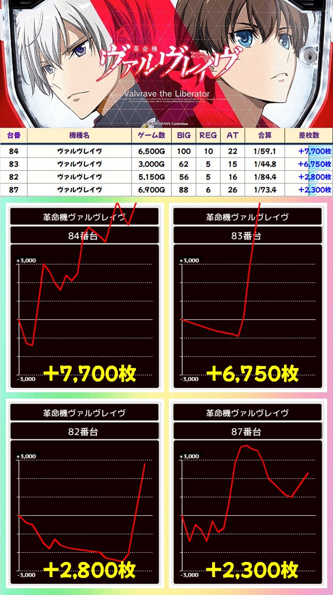 「ヴァルヴレイヴ」は6000枚7000枚と爆裂台を確認!