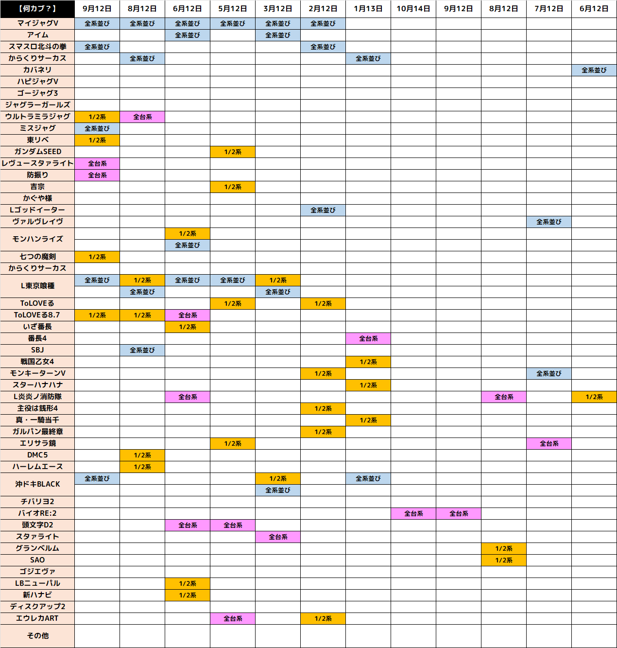 マイジャグには並びが複数あり、その他ジャグからはファンキーから優秀並びアリ。そのほかにもToLoveるやかぐやさまなど大量獲得機を筆頭に優秀並びを確認できました!