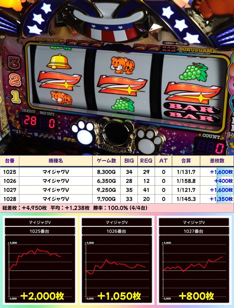 マイジャグラーV【1025–1028】 ➡ 平均 +1,238枚