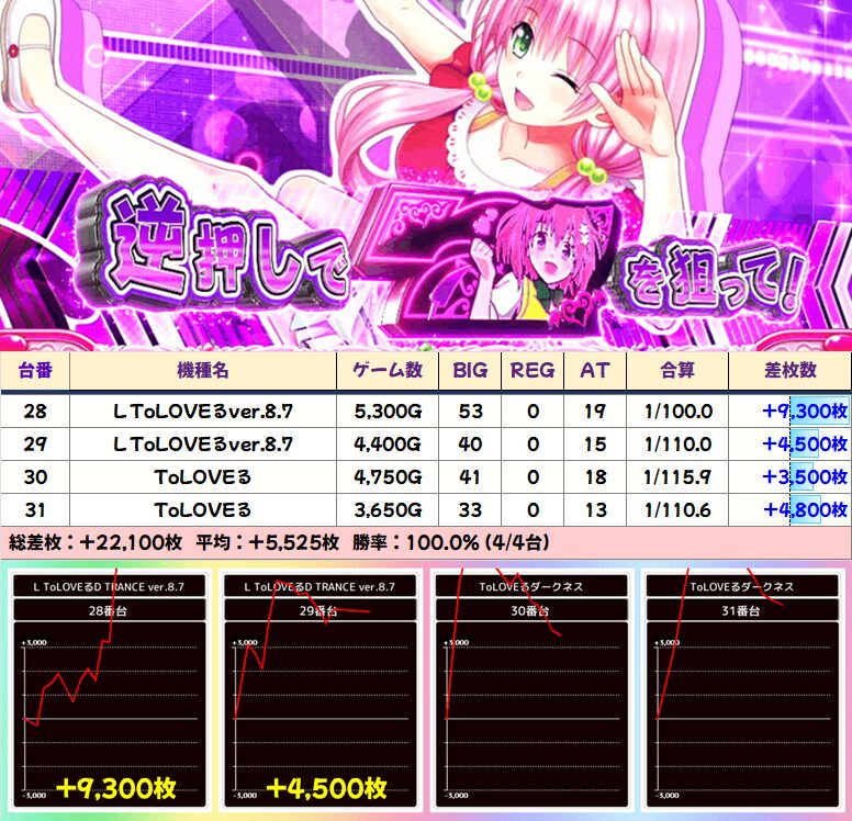 ToLOVEるer.8.7+ToLOVEる【28–31】 ➡ 平均 +5,525枚